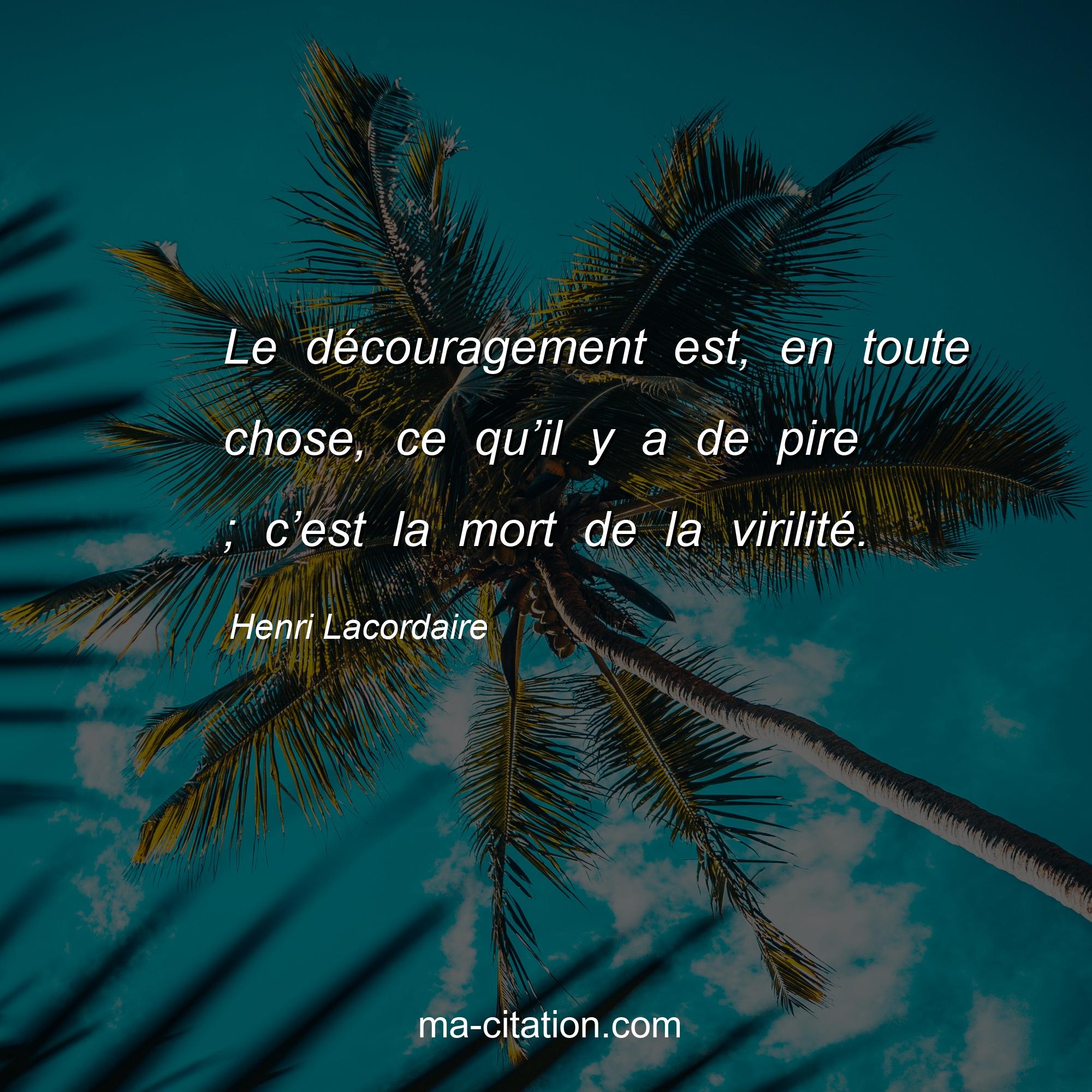 Citation sur la vie de Henri Lacordaire :Le découragement est, en toute chose, ce qu’il y a de pire ; c’est la mort de la virilité.