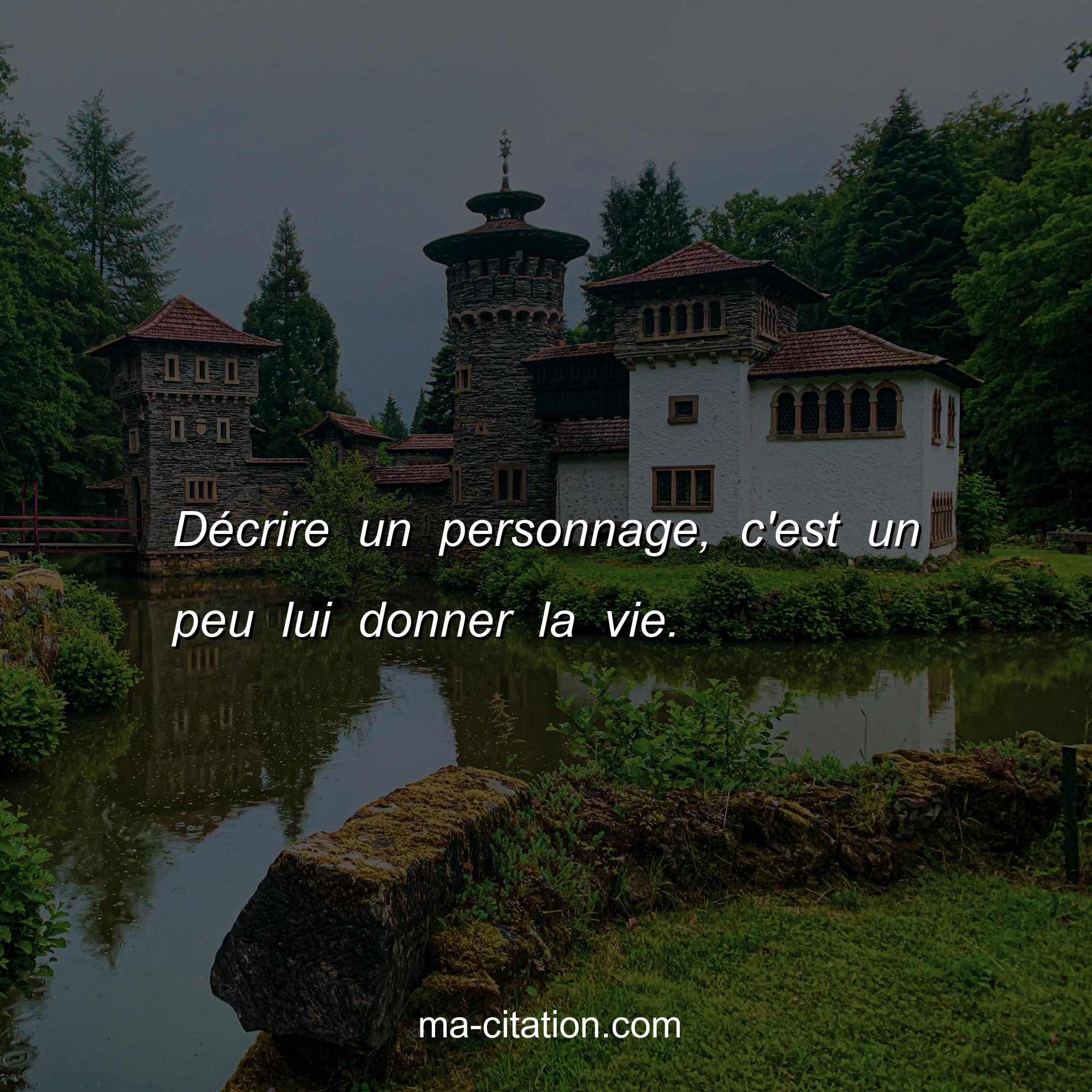 Citation sur la vie :Décrire un personnage, c'est un peu lui donner la vie.