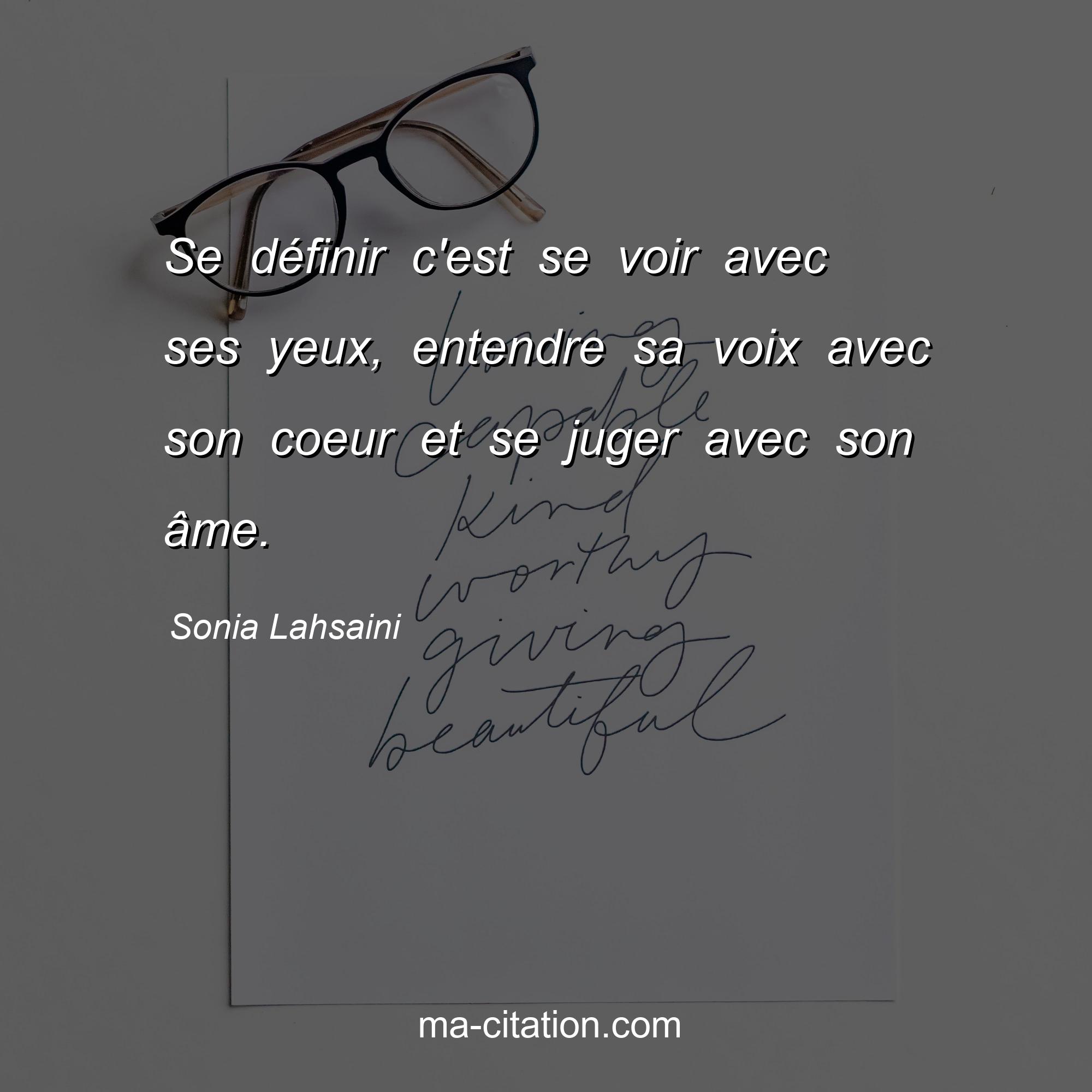 Citation sur la vie de Sonia Lahsaini :Se définir c'est se voir avec ses yeux, entendre sa voix avec son coeur et se juger avec son âme.
