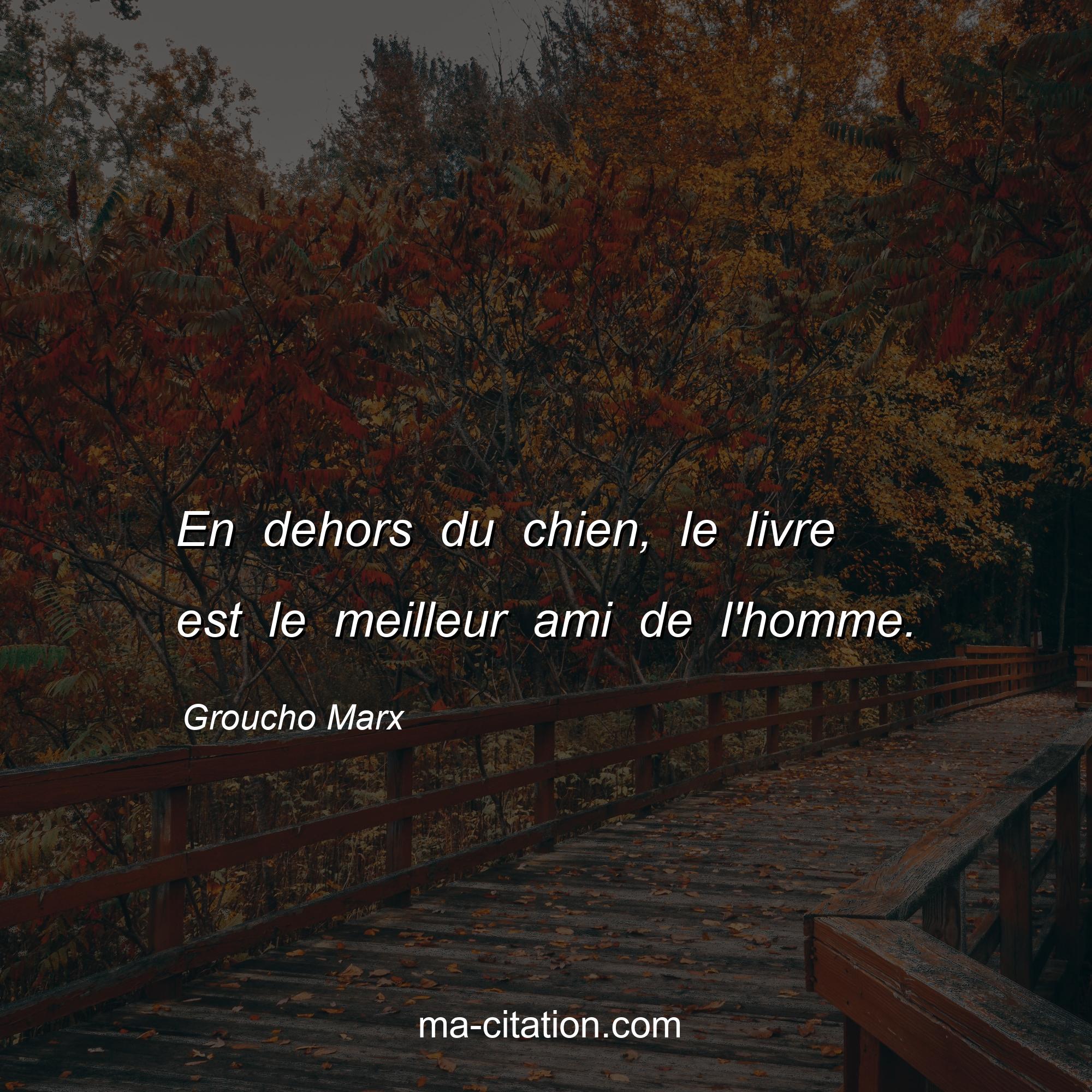 Citation sur la vie de Groucho Marx :En dehors du chien, le livre est le meilleur ami de l'homme.