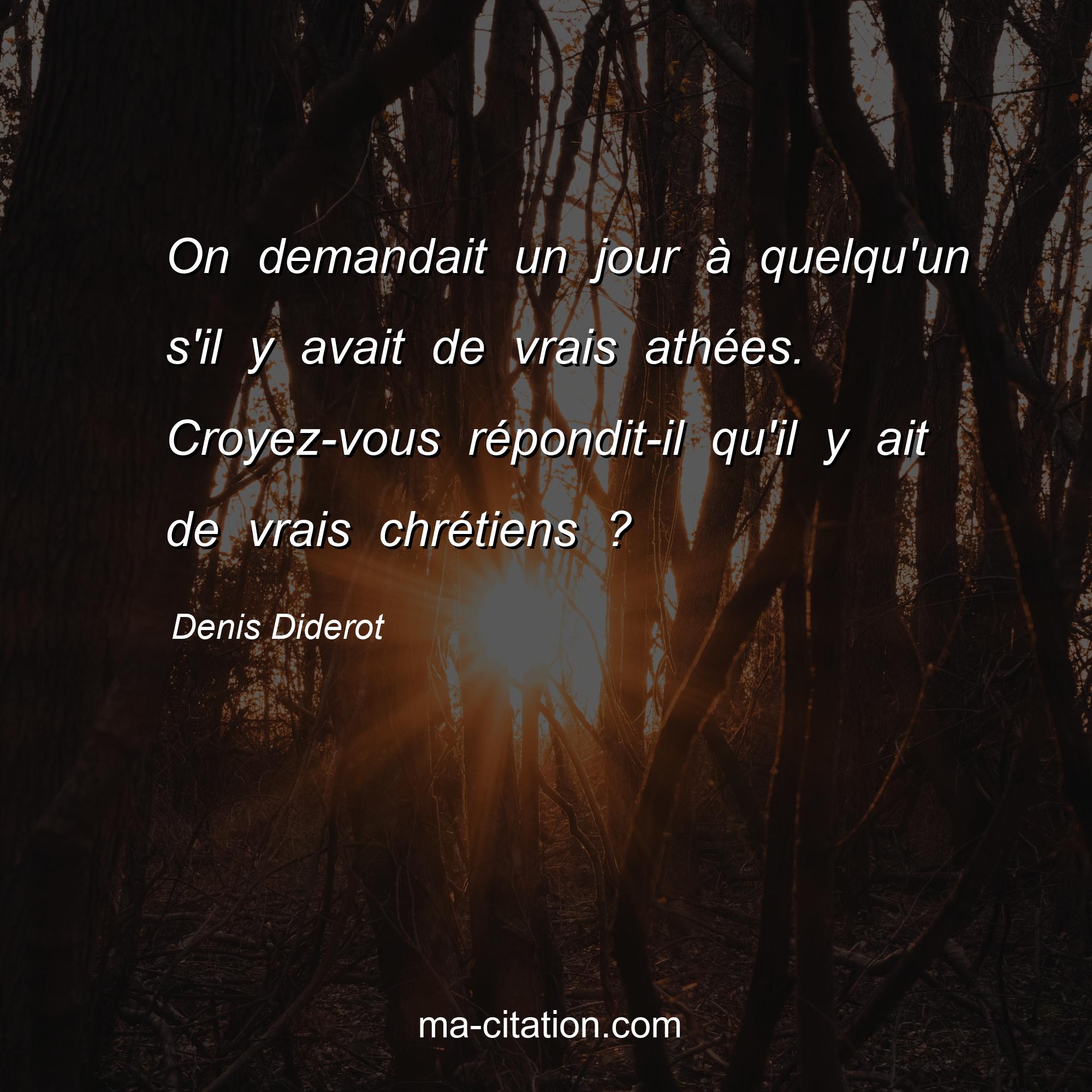 Citation sur la vie de Denis Diderot :On demandait un jour à quelqu'un s'il y avait de vrais athées. Croyez-vous répondit-il qu'il y ait de vrais chrétiens ?
