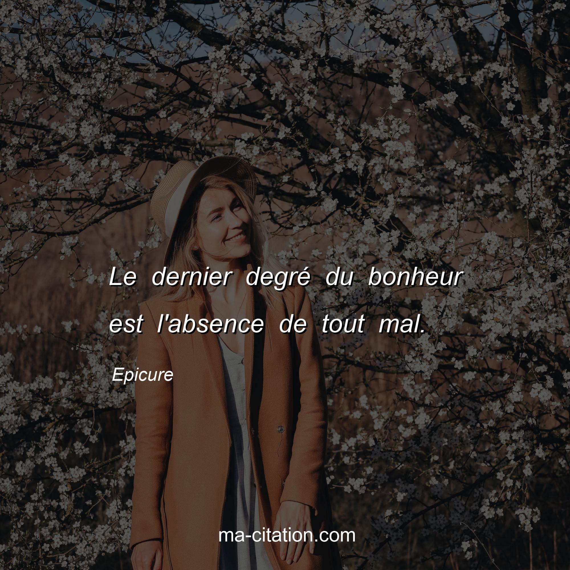 Citation sur la vie d'Epicure :Le dernier degré du bonheur est l'absence de tout mal.