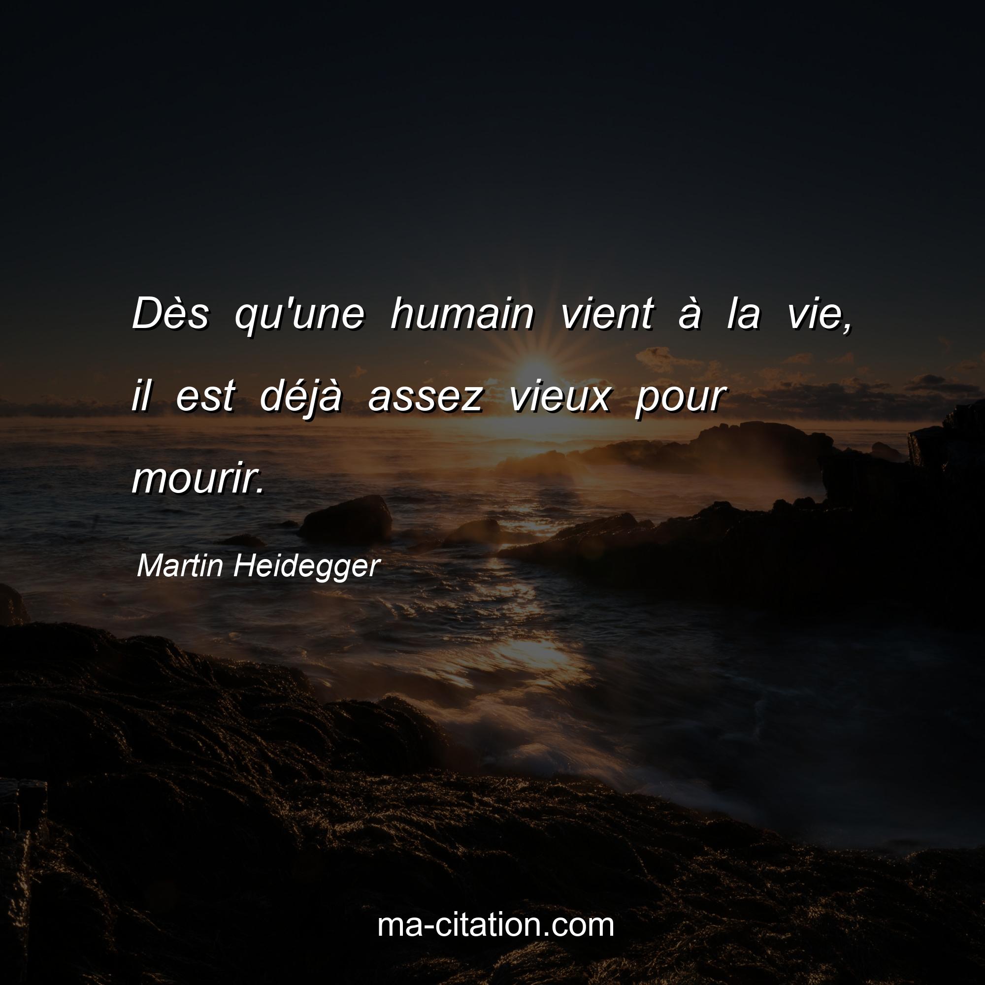 Citation sur la vie de Martin Heidegger :Dès qu'une humain vient à la vie, il est déjà assez vieux pour mourir.