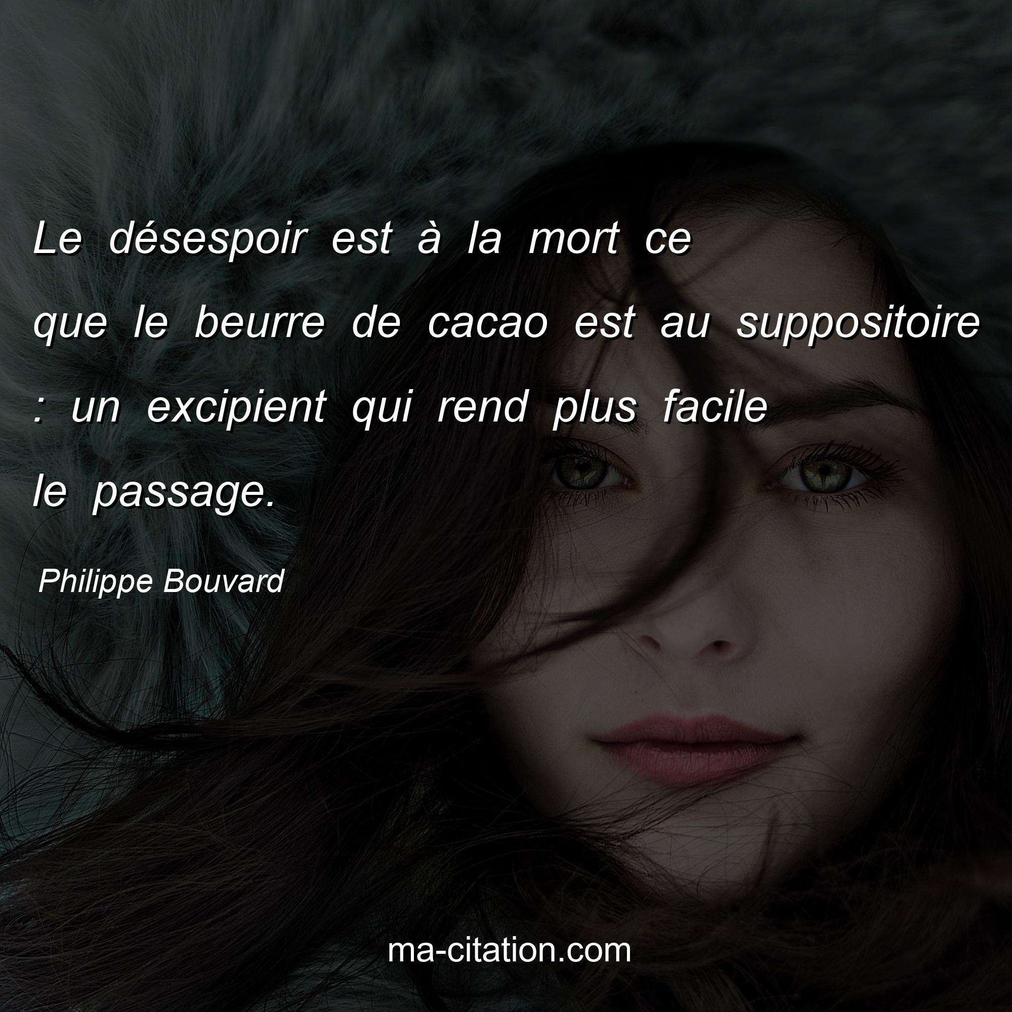 Citation sur la vie de Philippe Bouvard :Le désespoir est à la mort ce que le beurre de cacao est au suppositoire : un excipient qui rend plus facile le passage.