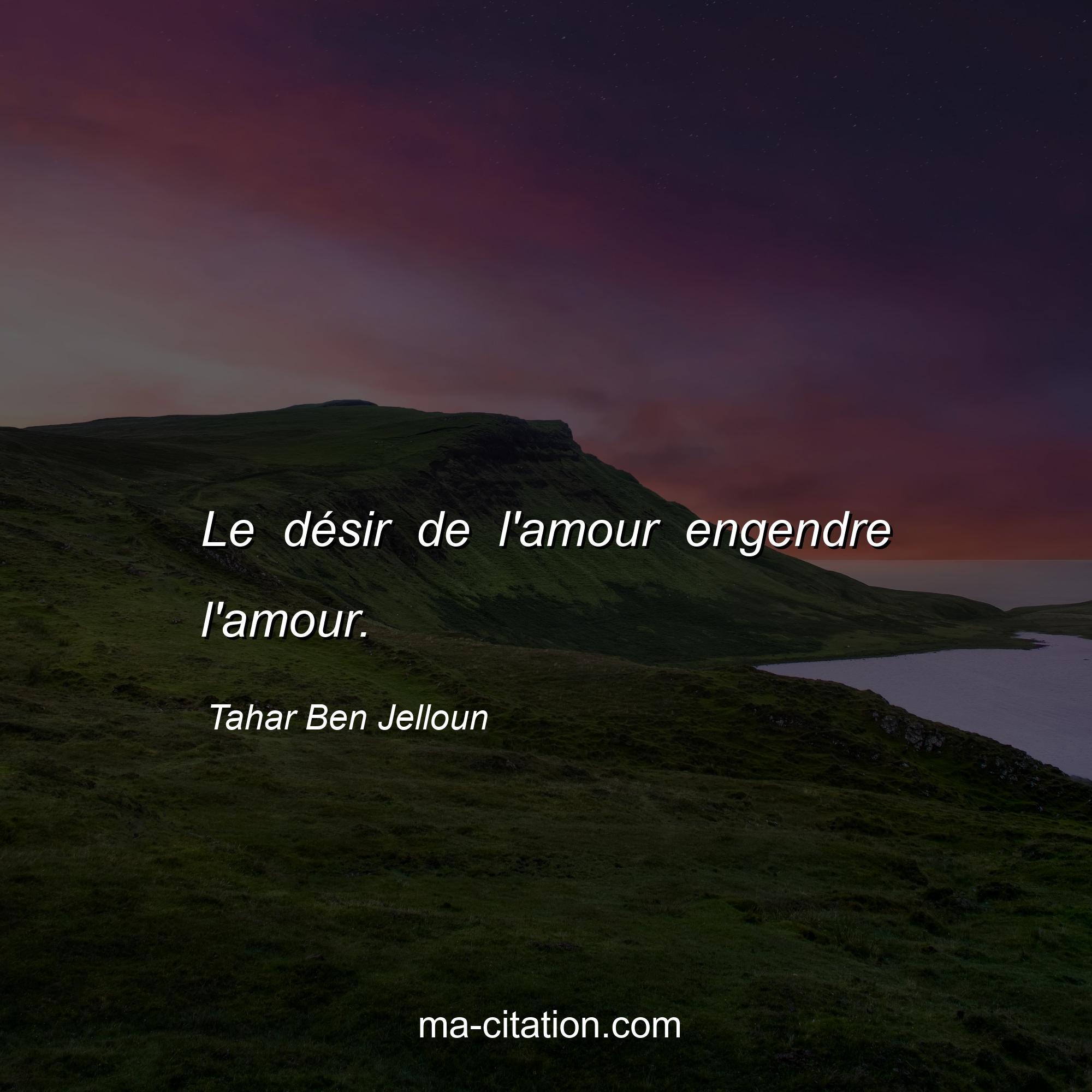 Citation sur la vie de Tahar Ben Jelloun :Le désir de l'amour engendre l'amour.