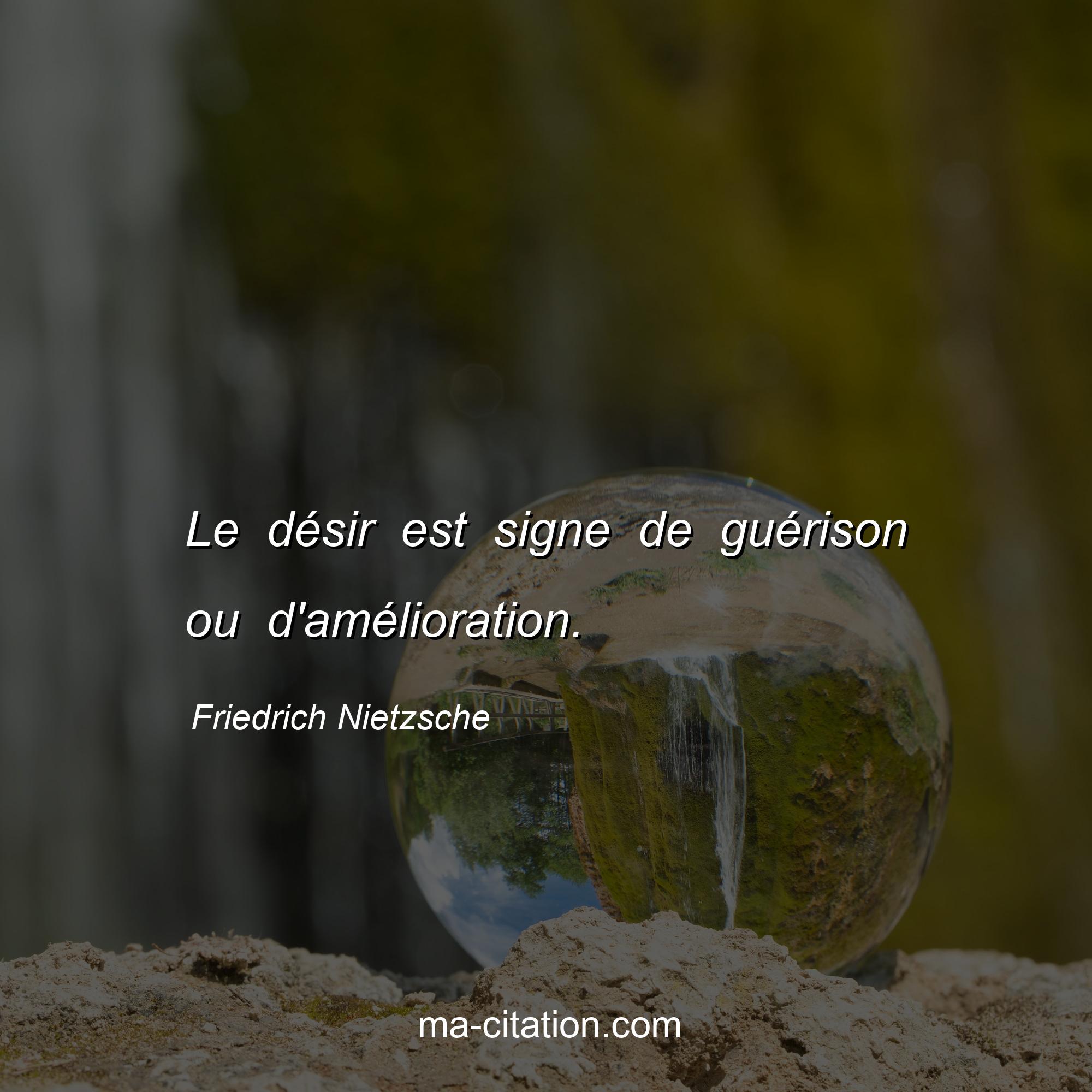 Citation sur la vie de Friedrich Nietzsche :Le désir est signe de guérison ou d'amélioration.