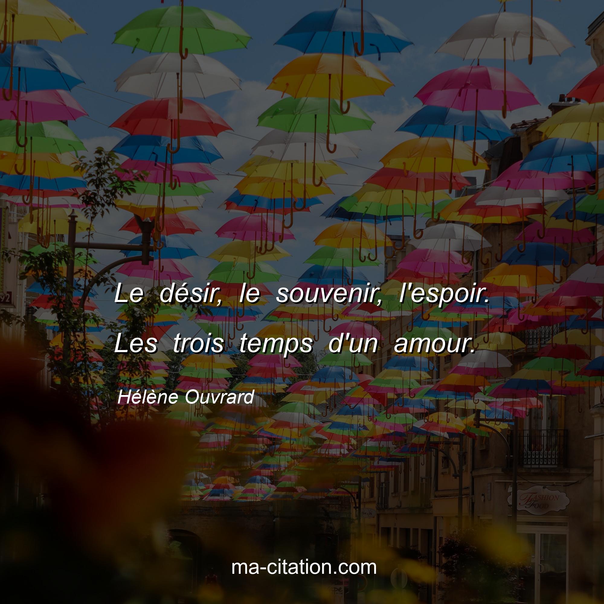 Hélène Ouvrard est l'auteur de la citation sur la vie "Le désir, le souvenir, l'espoir. Les trois temps d'un amour.".