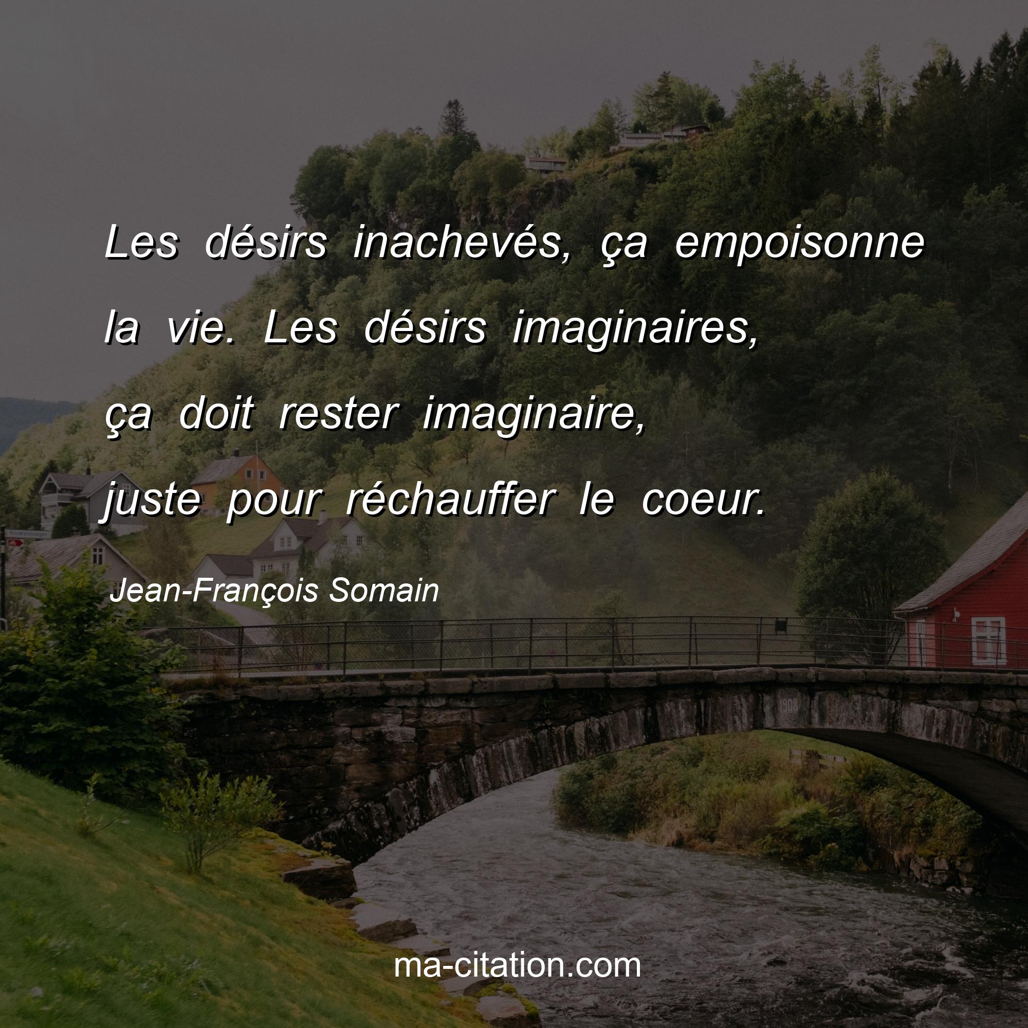 Citation sur la vie de Jean-François Somain :Les désirs inachevés, ça empoisonne la vie. Les désirs imaginaires, ça doit rester imaginaire, juste pour réchauffer le coeur.