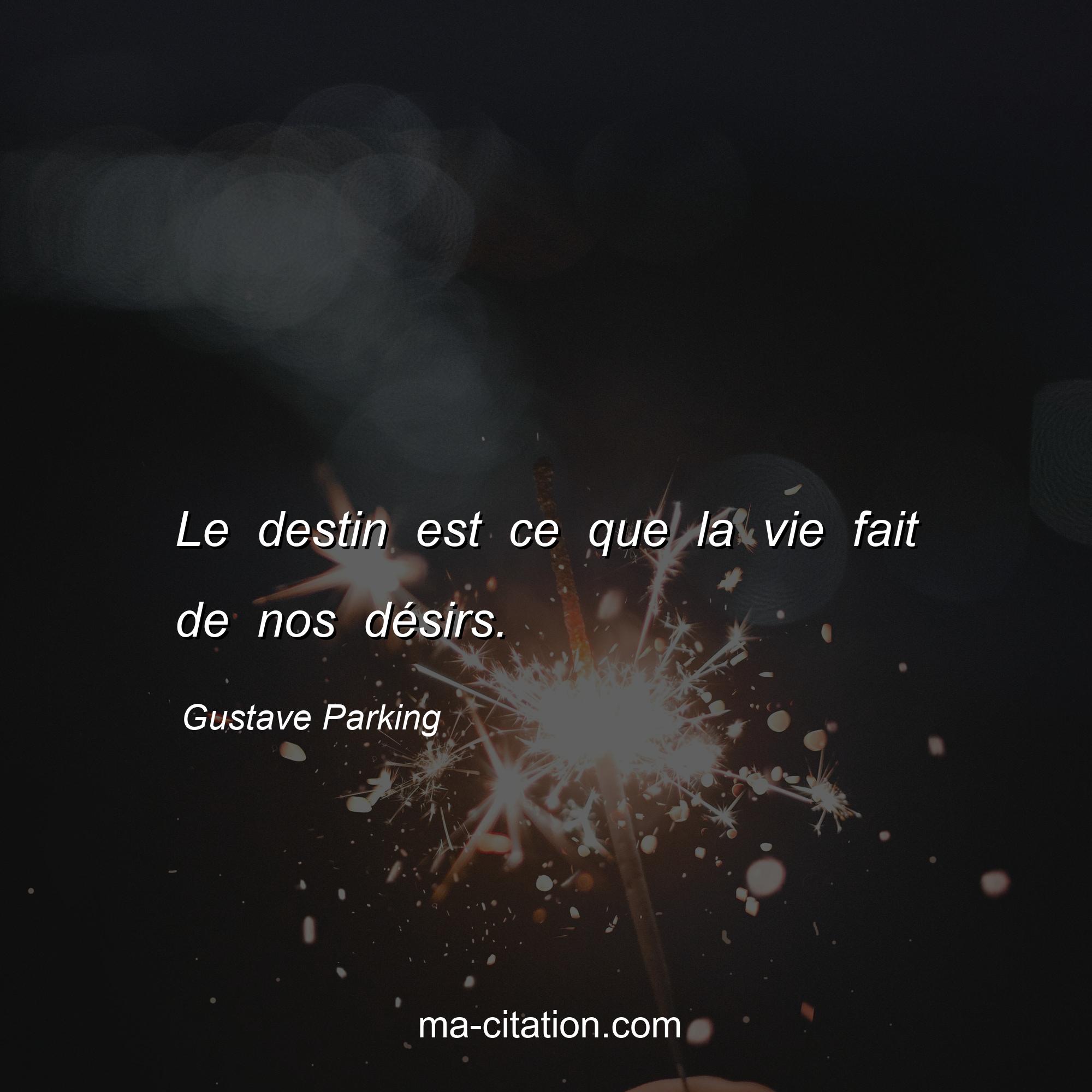 Gustave Parking est l'auteur de la citation sur la vie "Le destin est ce que la vie fait de nos désirs.".