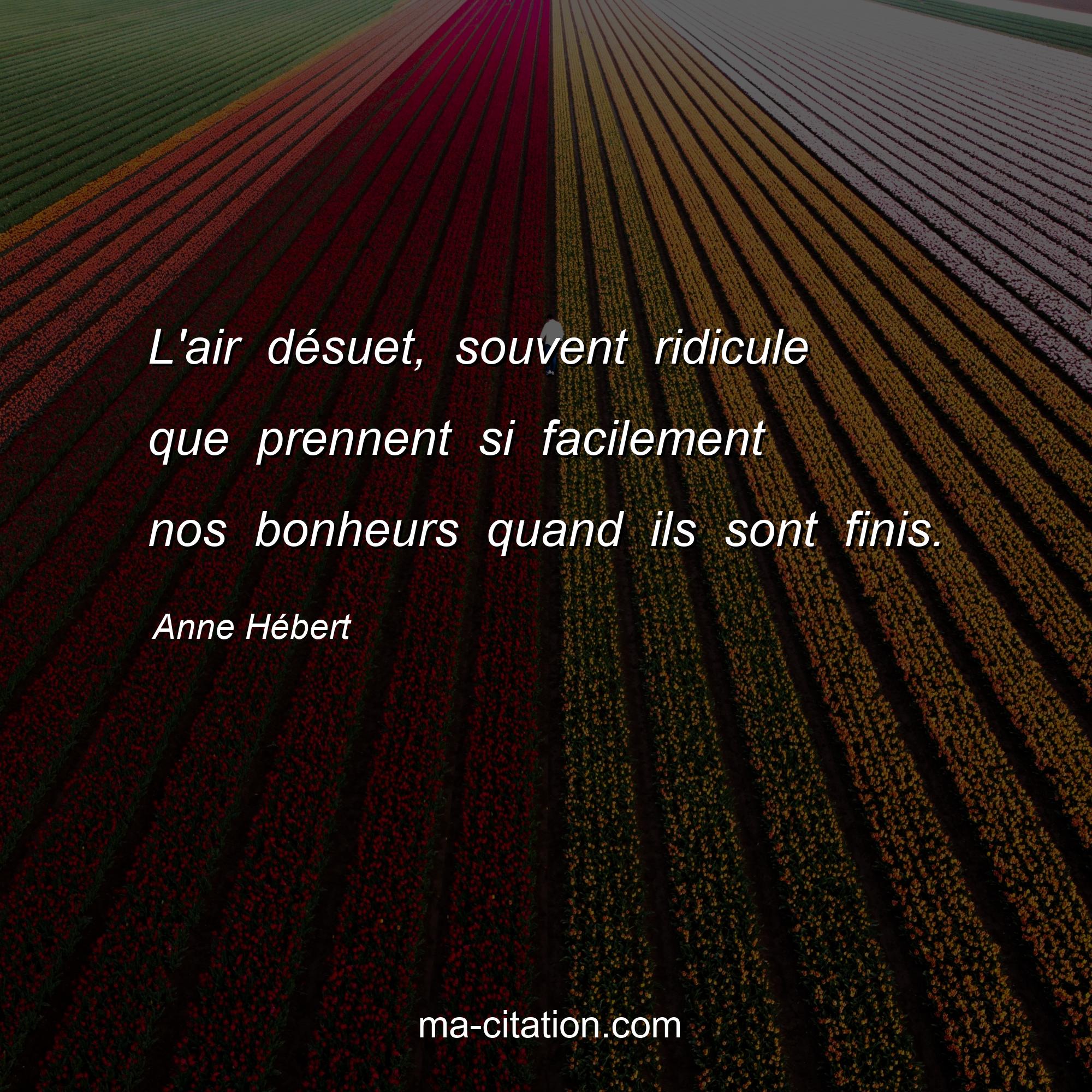 Citation sur la vie d'Anne Hébert :L'air désuet, souvent ridicule que prennent si facilement nos bonheurs quand ils sont finis.