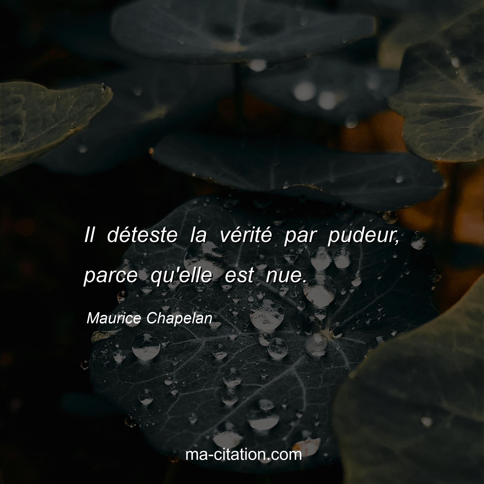 Citation sur la vie de Maurice Chapelan :Il déteste la vérité par pudeur, parce qu'elle est nue.
