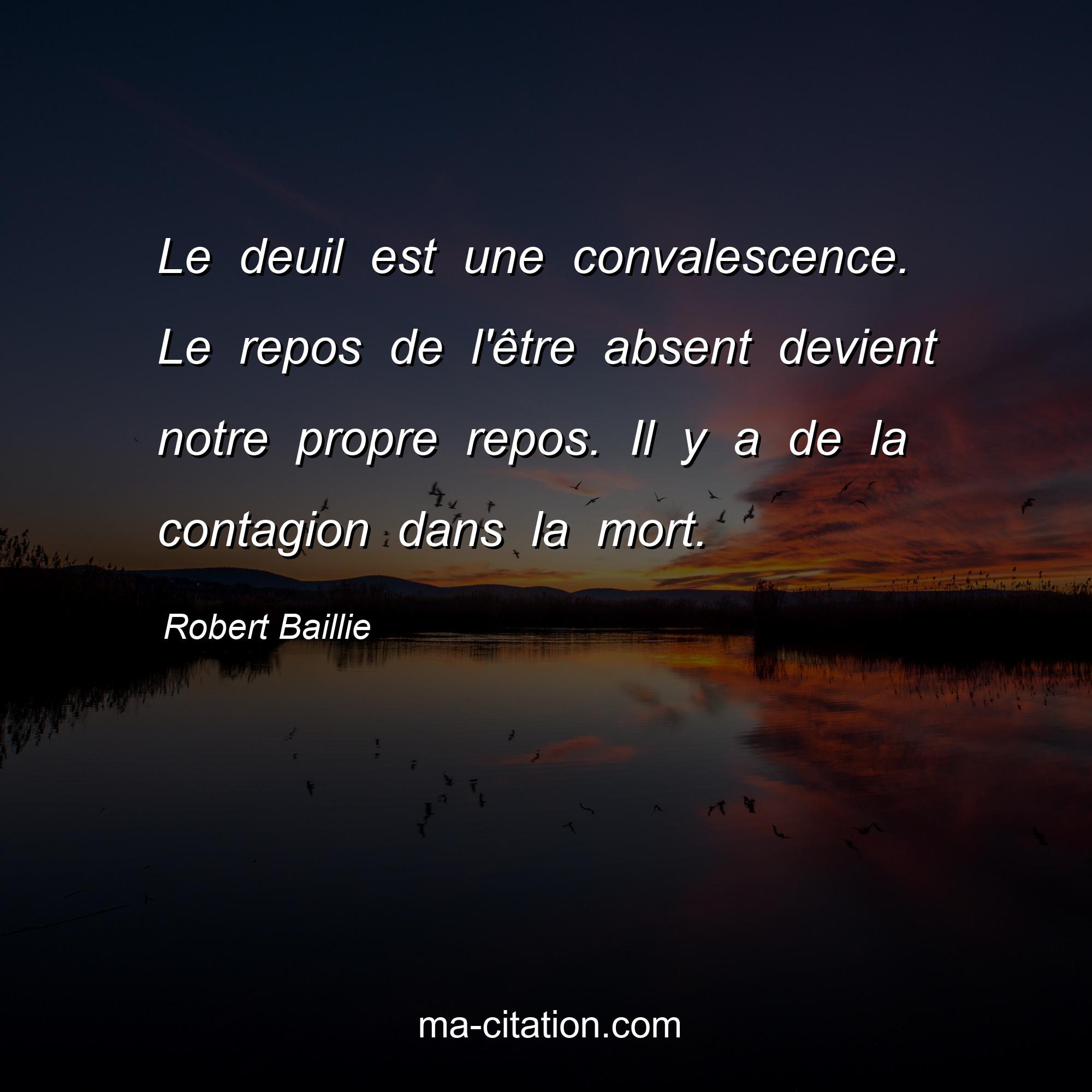 Citation sur la vie de Robert Baillie :Le deuil est une convalescence. Le repos de l'être absent devient notre propre repos. Il y a de la contagion dans la mort.