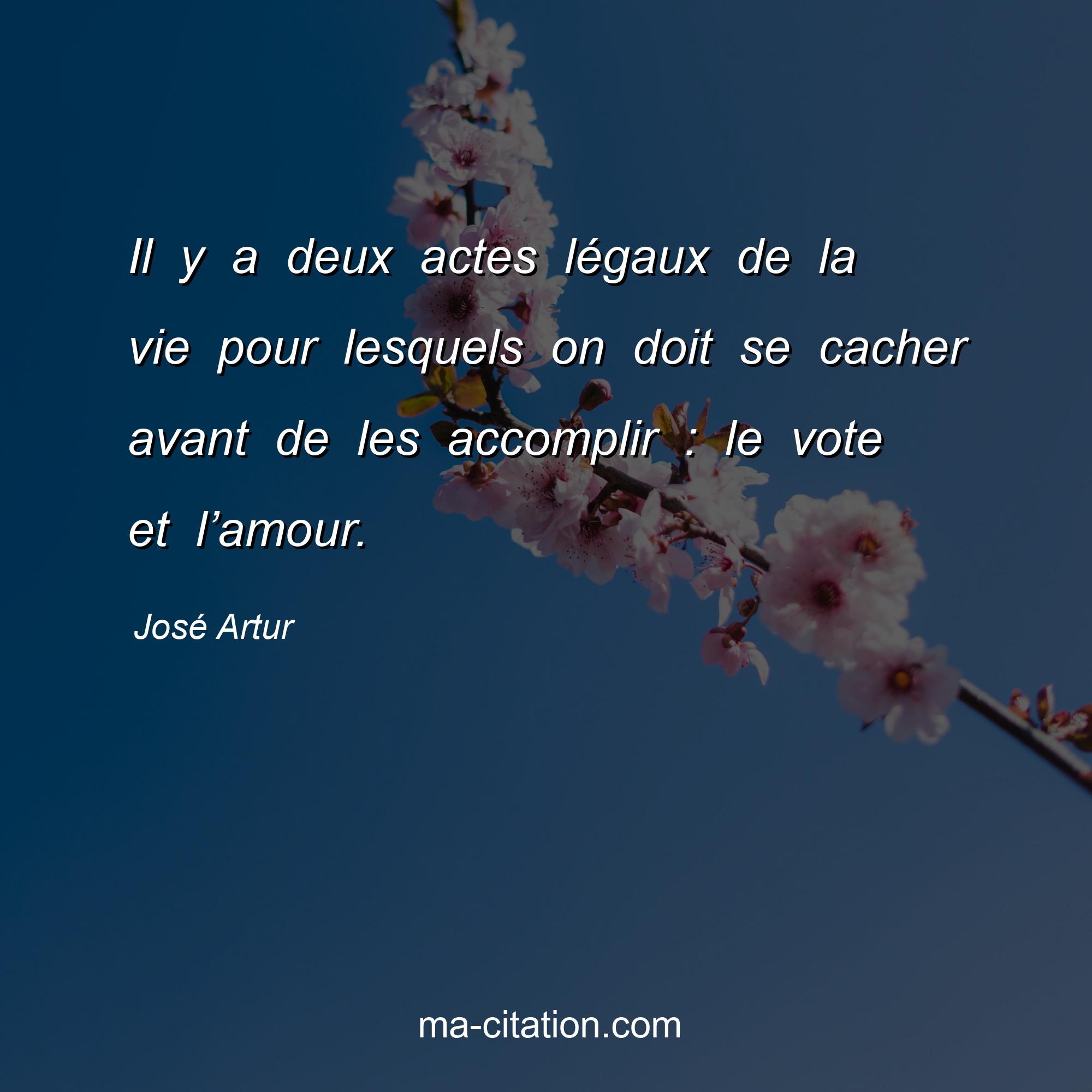 Citation sur la vie de José Artur :Il y a deux actes légaux de la vie pour lesquels on doit se cacher avant de les accomplir : le vote et l’amour.