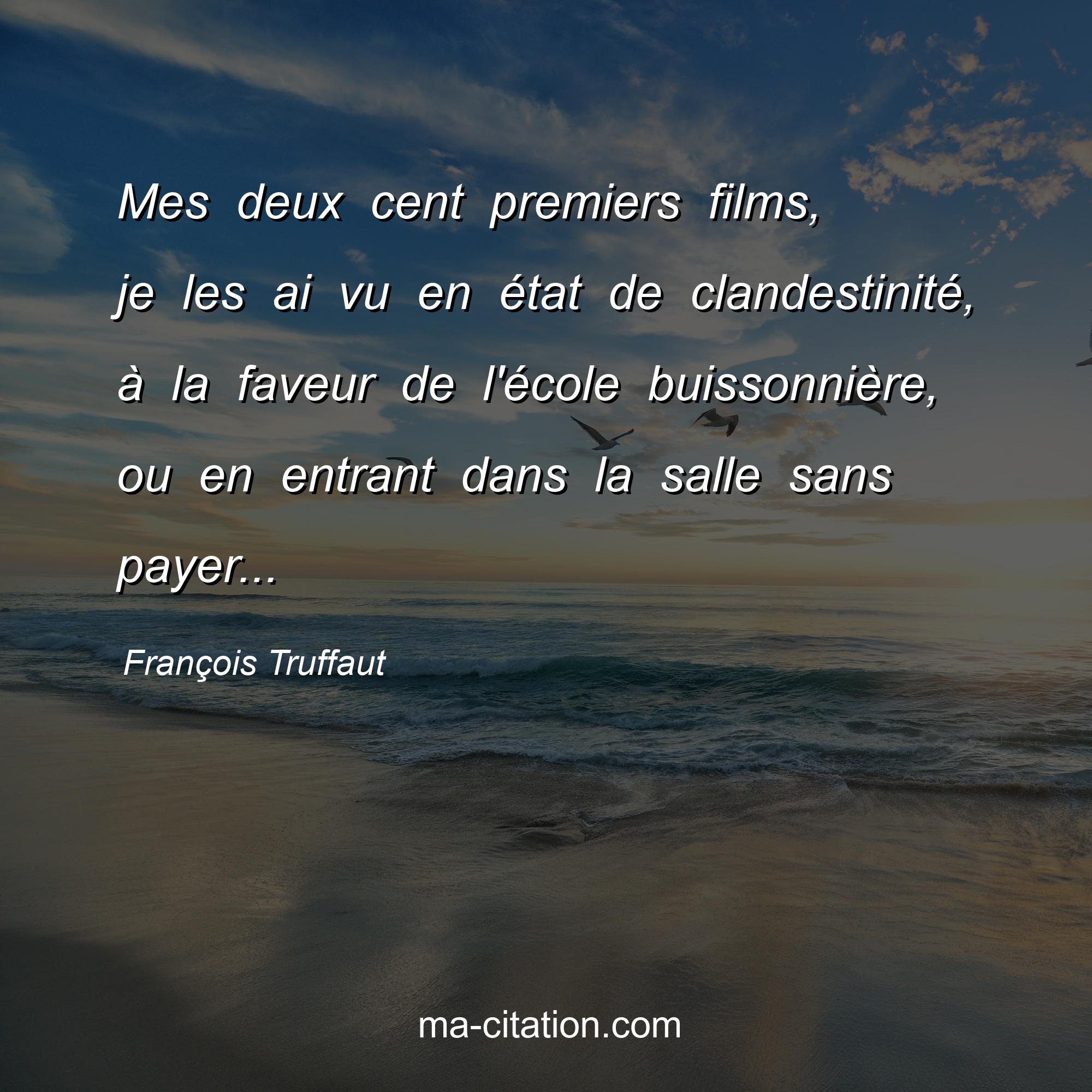 Citation sur la vie de François Truffaut :Mes deux cent premiers films, je les ai vu en état de clandestinité, à la faveur de l'école buissonnière, ou en entrant dans la salle sans payer...