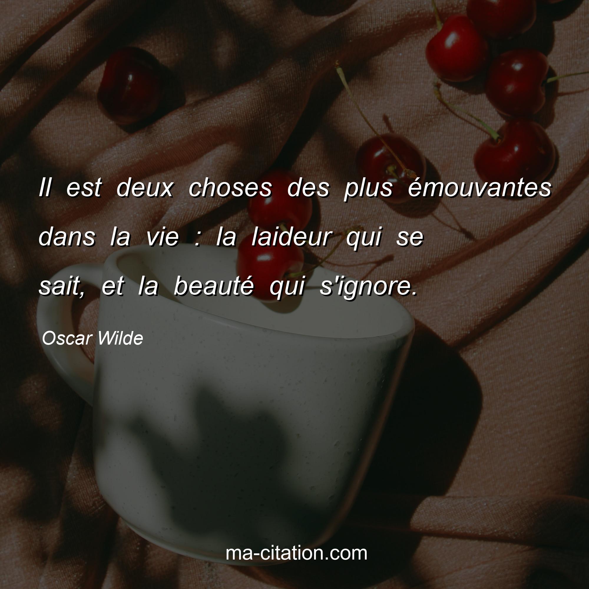 Citation sur la vie d'Oscar Wilde :Il est deux choses des plus émouvantes dans la vie : la laideur qui se sait, et la beauté qui s'ignore.