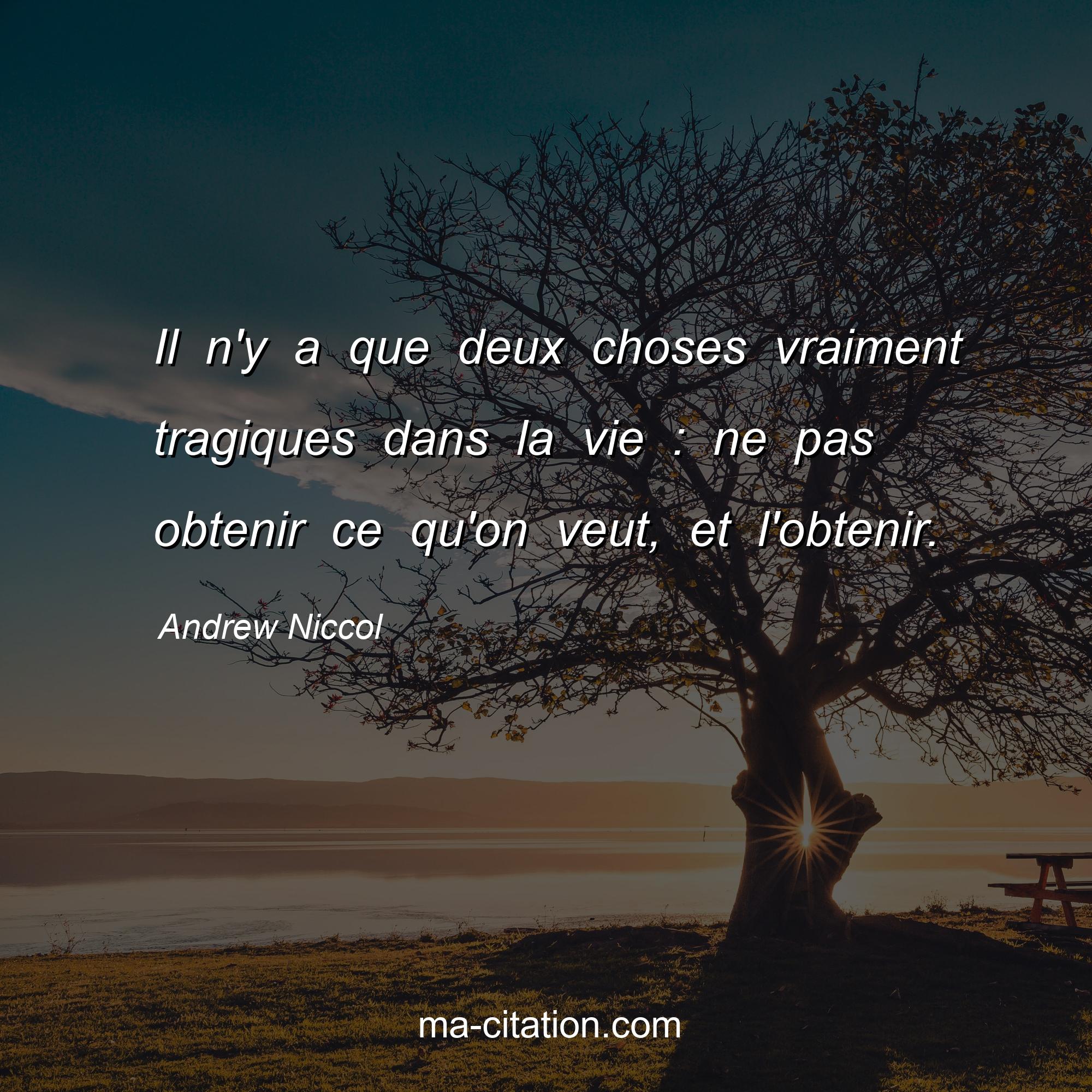 Citation sur la vie d'Andrew Niccol :Il n'y a que deux choses vraiment tragiques dans la vie : ne pas obtenir ce qu'on veut, et l'obtenir.