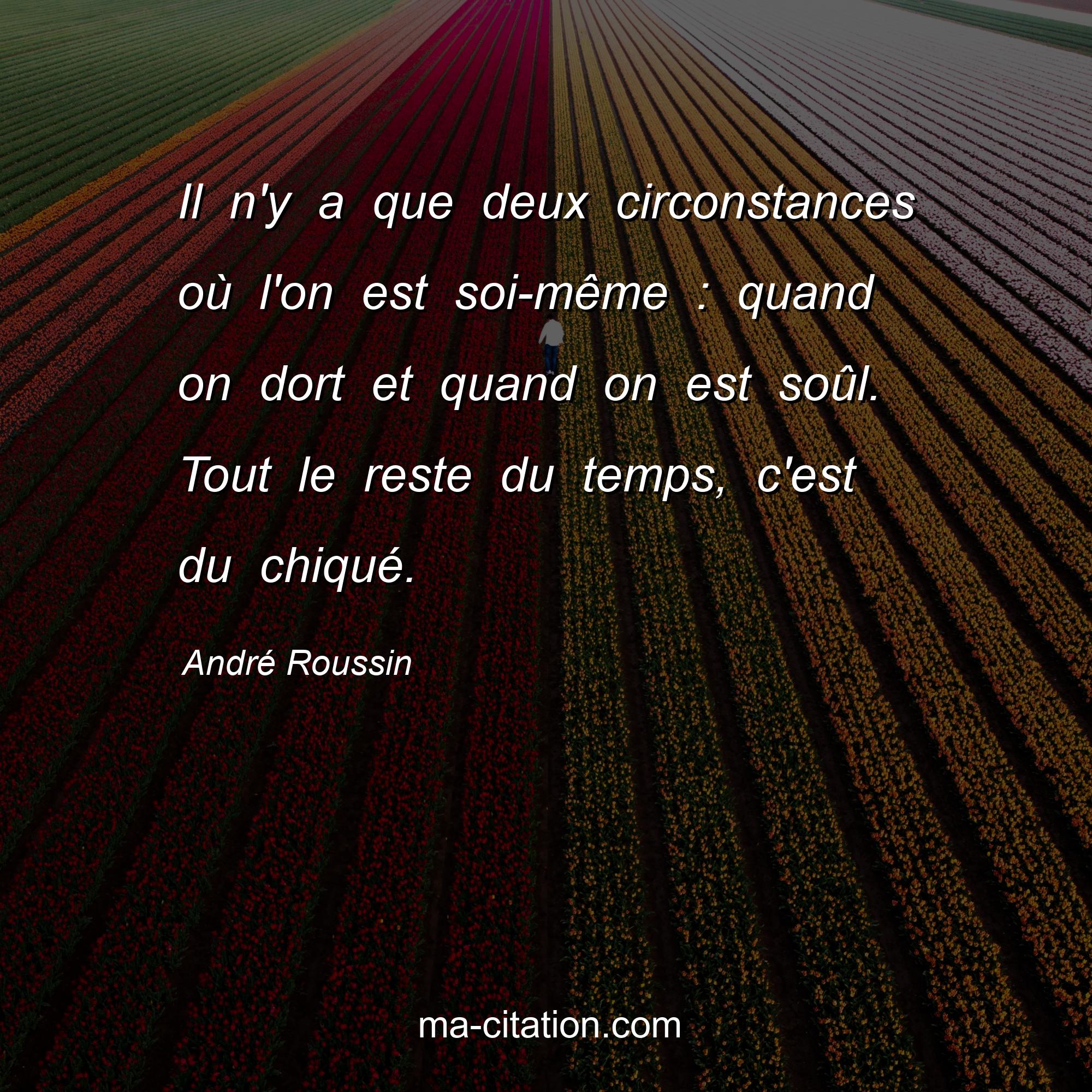 Citation sur la vie d'André Roussin :Il n'y a que deux circonstances où l'on est soi-même : quand on dort et quand on est soûl. Tout le reste du temps, c'est du chiqué.