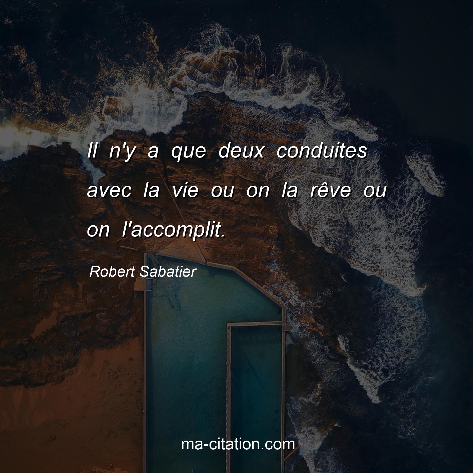 Robert Sabatier est l'auteur de la citation sur la vie "Il n'y a que deux conduites avec la vie ou on la rêve ou on l'accomplit.".