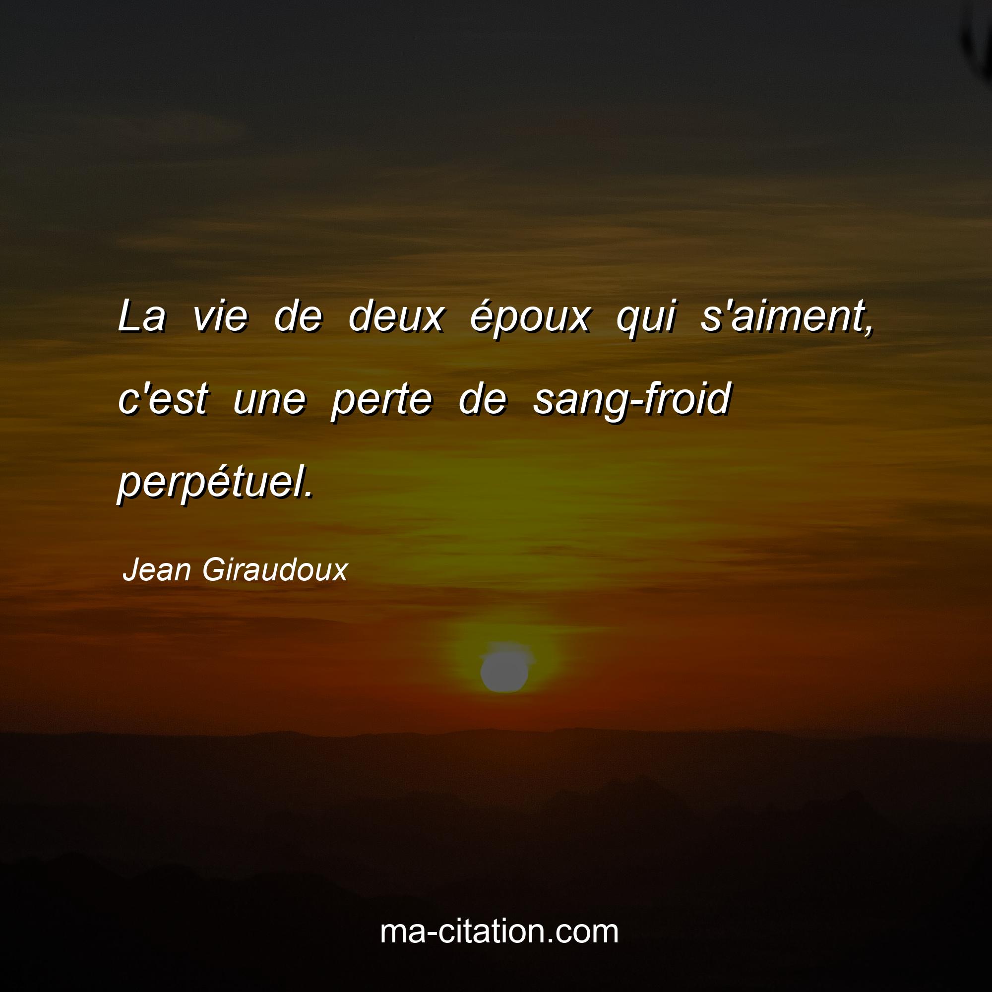 Citation sur la vie de Jean Giraudoux :La vie de deux époux qui s'aiment, c'est une perte de sang-froid perpétuel.