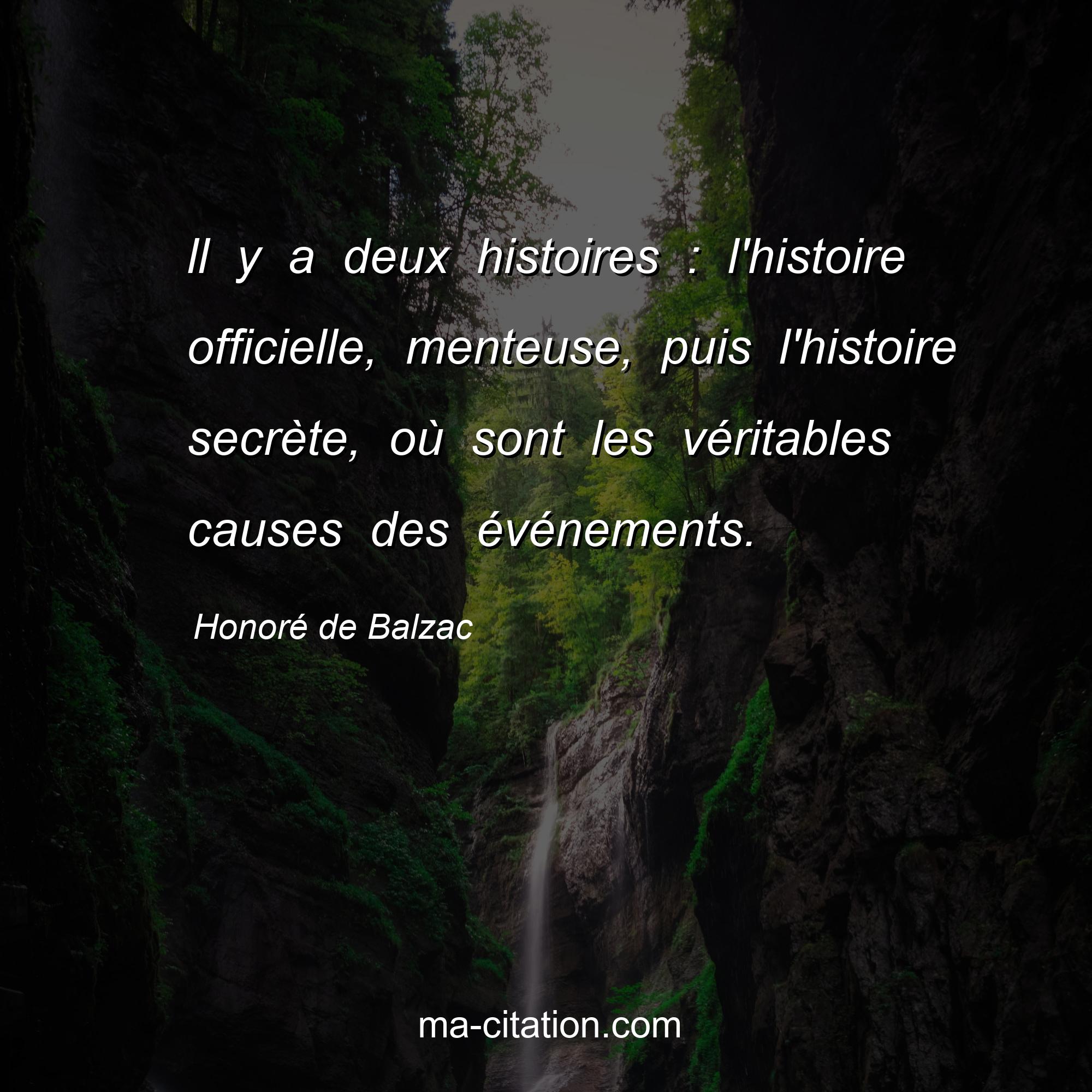 Citation sur la vie de Honoré de Balzac :ll y a deux histoires : l'histoire officielle, menteuse, puis l'histoire secrète, où sont les véritables causes des événements.