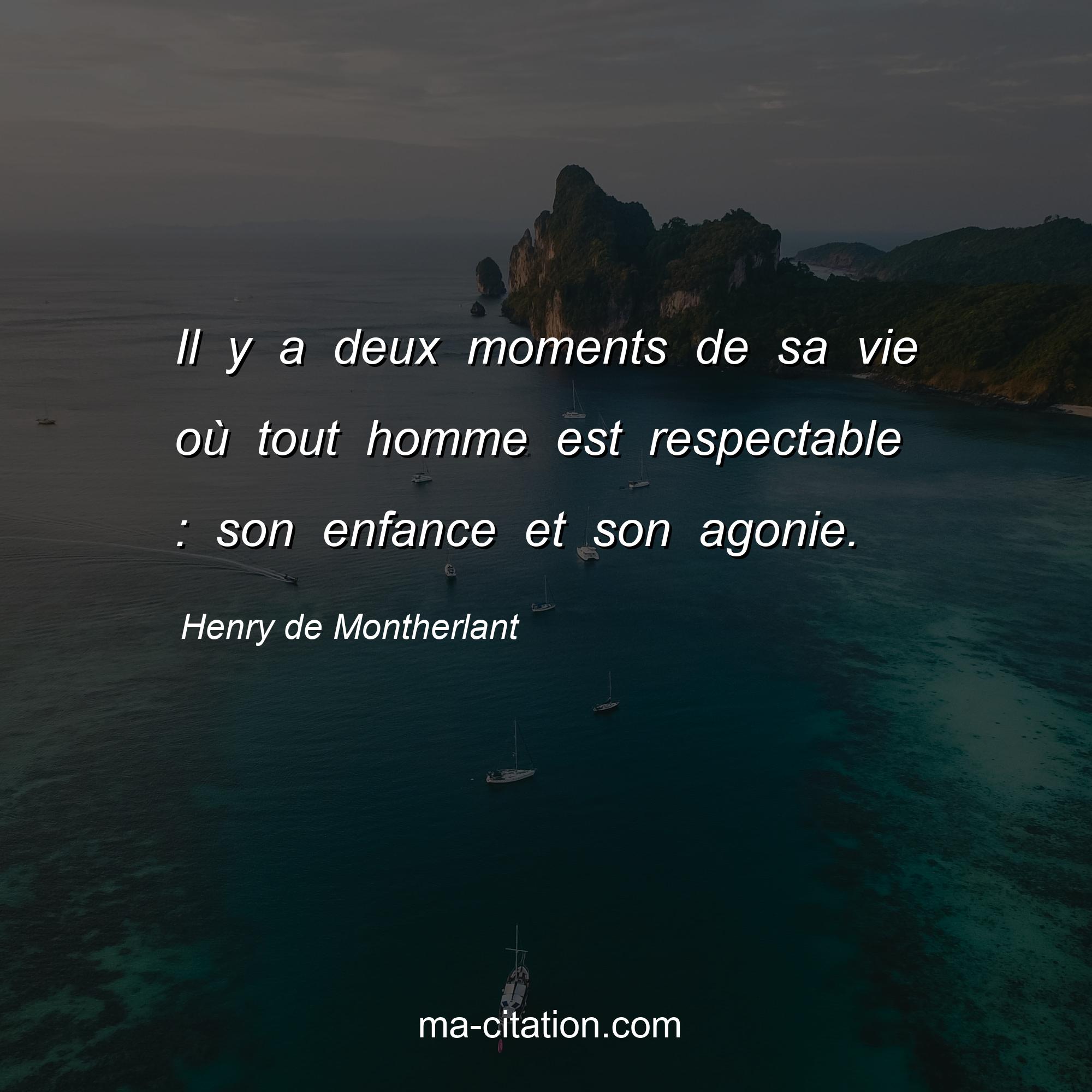 Citation sur la vie de Henry de Montherlant :Il y a deux moments de sa vie où tout homme est respectable : son enfance et son agonie.