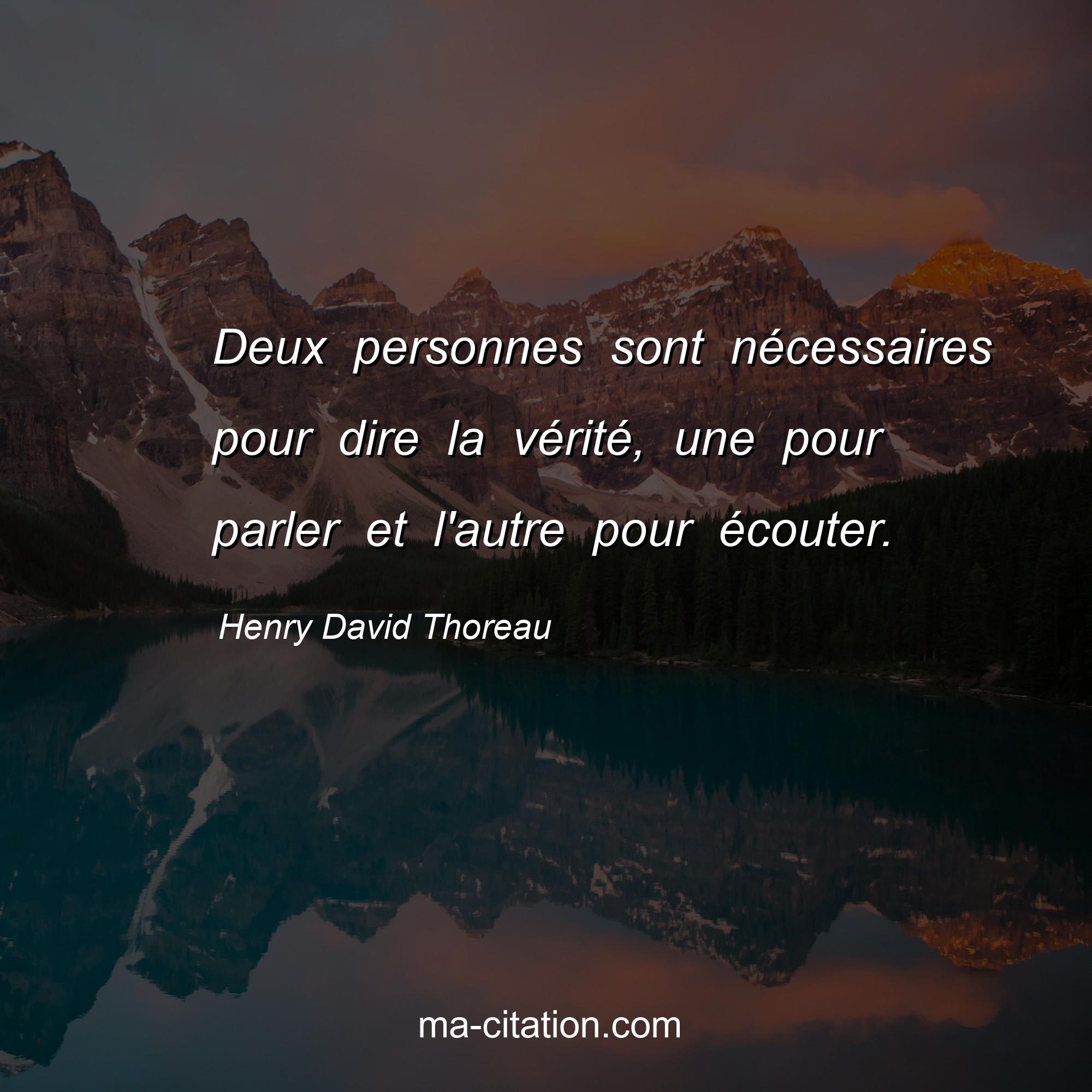 Citation sur la vie de Henry David Thoreau :Deux personnes sont nécessaires pour dire la vérité, une pour parler et l'autre pour écouter.