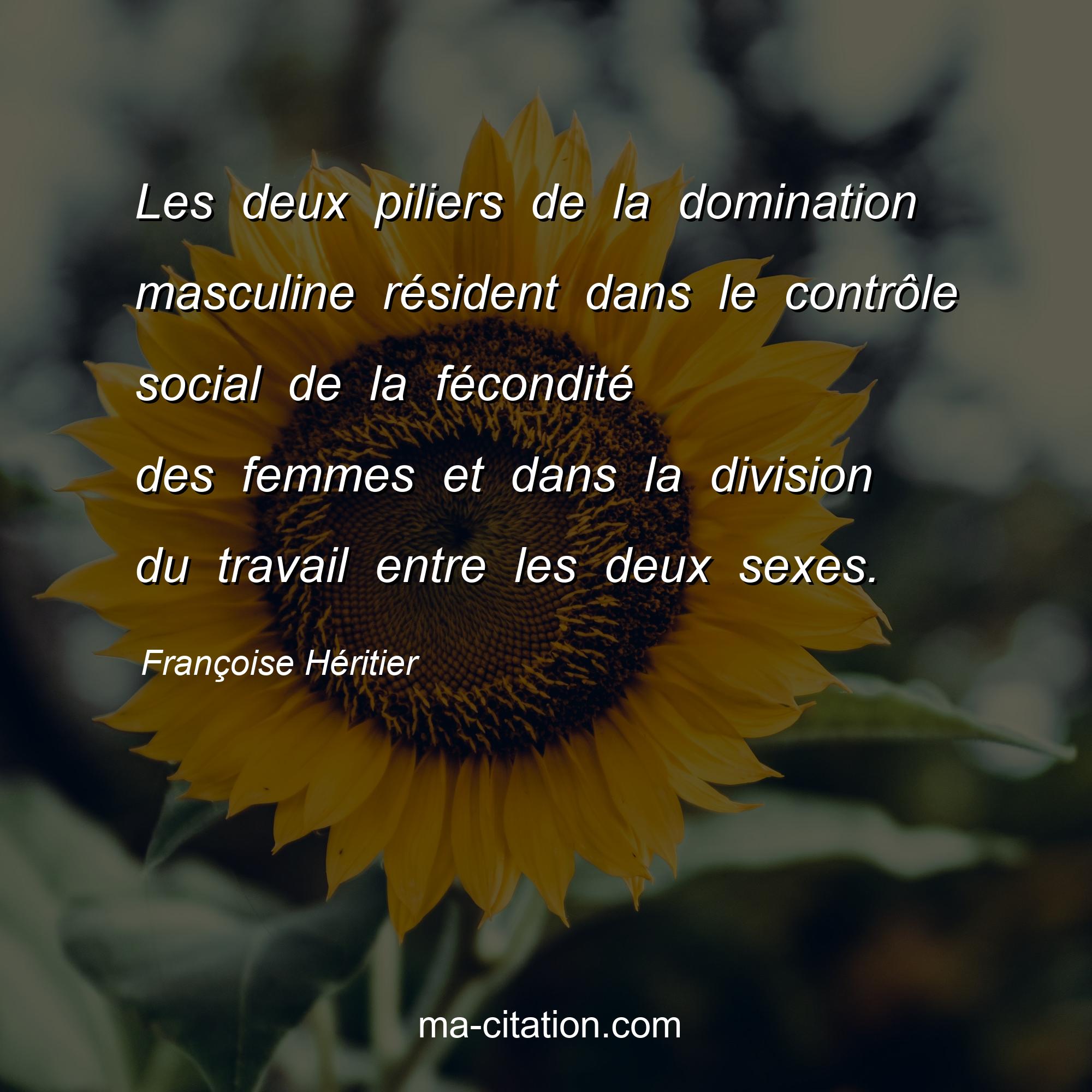 Citation sur la vie de Françoise Héritier :Les deux piliers de la domination masculine résident dans le contrôle social de la fécondité des femmes et dans la division du travail entre les deux sexes.