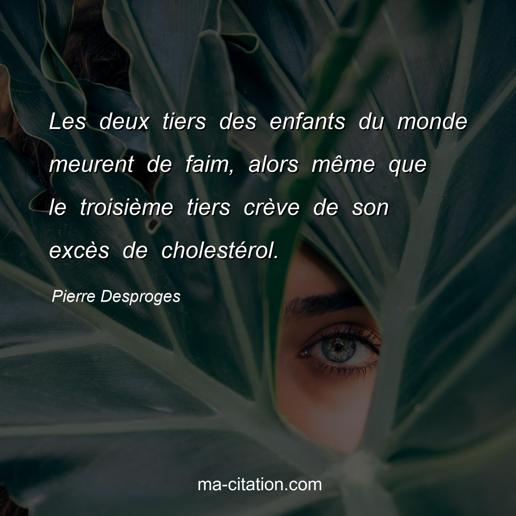 Citation sur la vie de Pierre Desproges :Les deux tiers des enfants du monde meurent de faim, alors même que le troisième tiers crève de son excès de cholestérol.