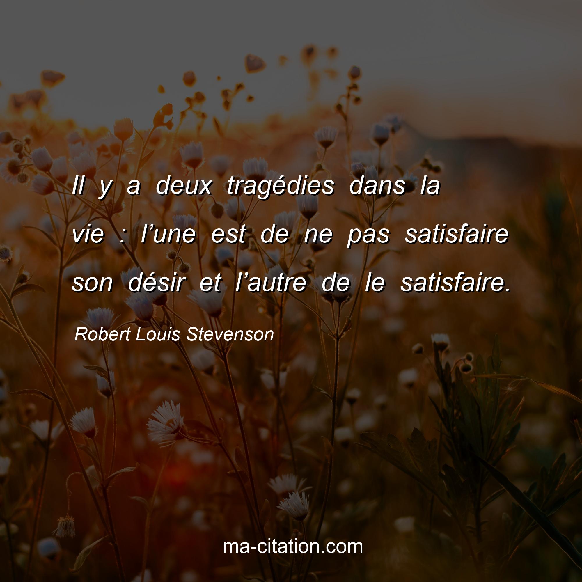 Citation sur la vie de Robert Louis Stevenson :Il y a deux tragédies dans la vie : l’une est de ne pas satisfaire son désir et l’autre de le satisfaire.