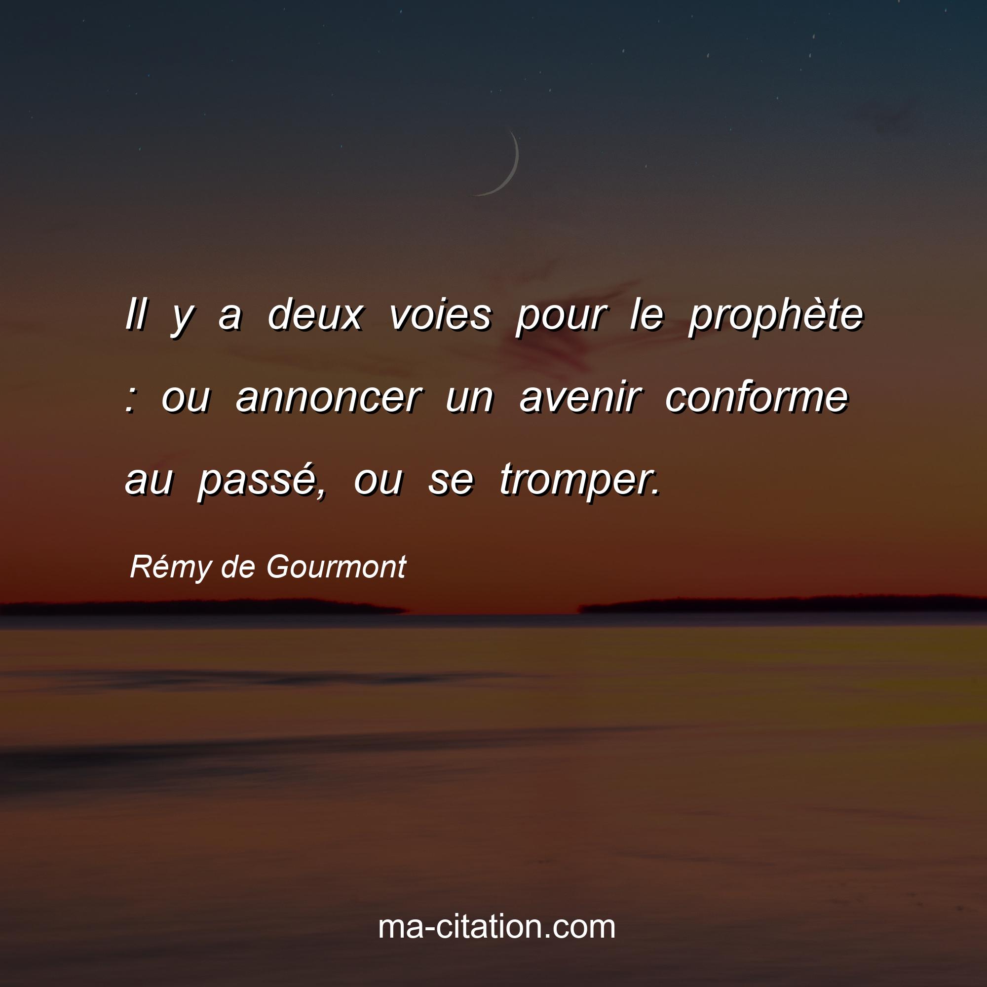 Citation sur la vie de Rémy de Gourmont :Il y a deux voies pour le prophète : ou annoncer un avenir conforme au passé, ou se tromper.