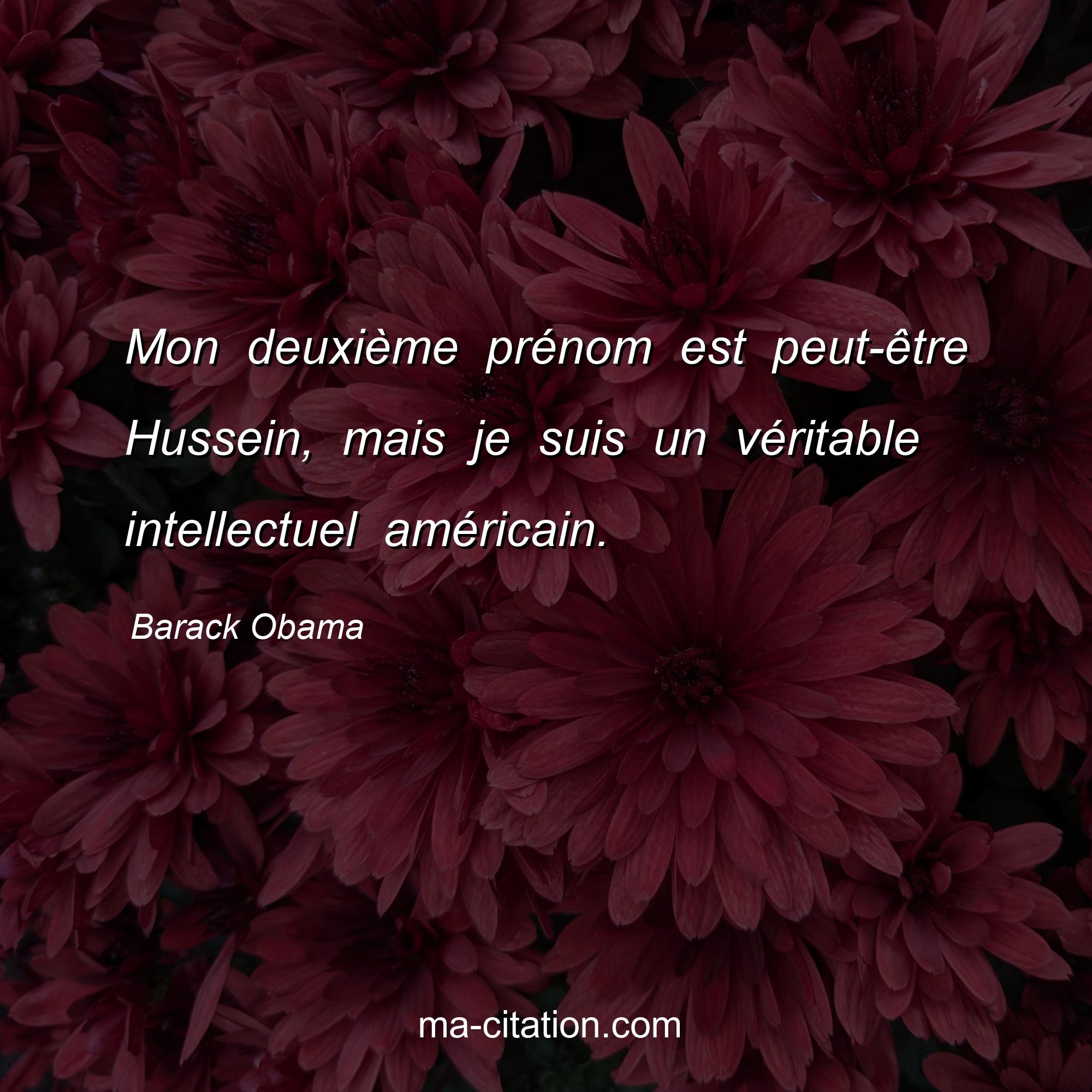Citation sur la vie de Barack Obama :Mon deuxième prénom est peut-être Hussein, mais je suis un véritable intellectuel américain.