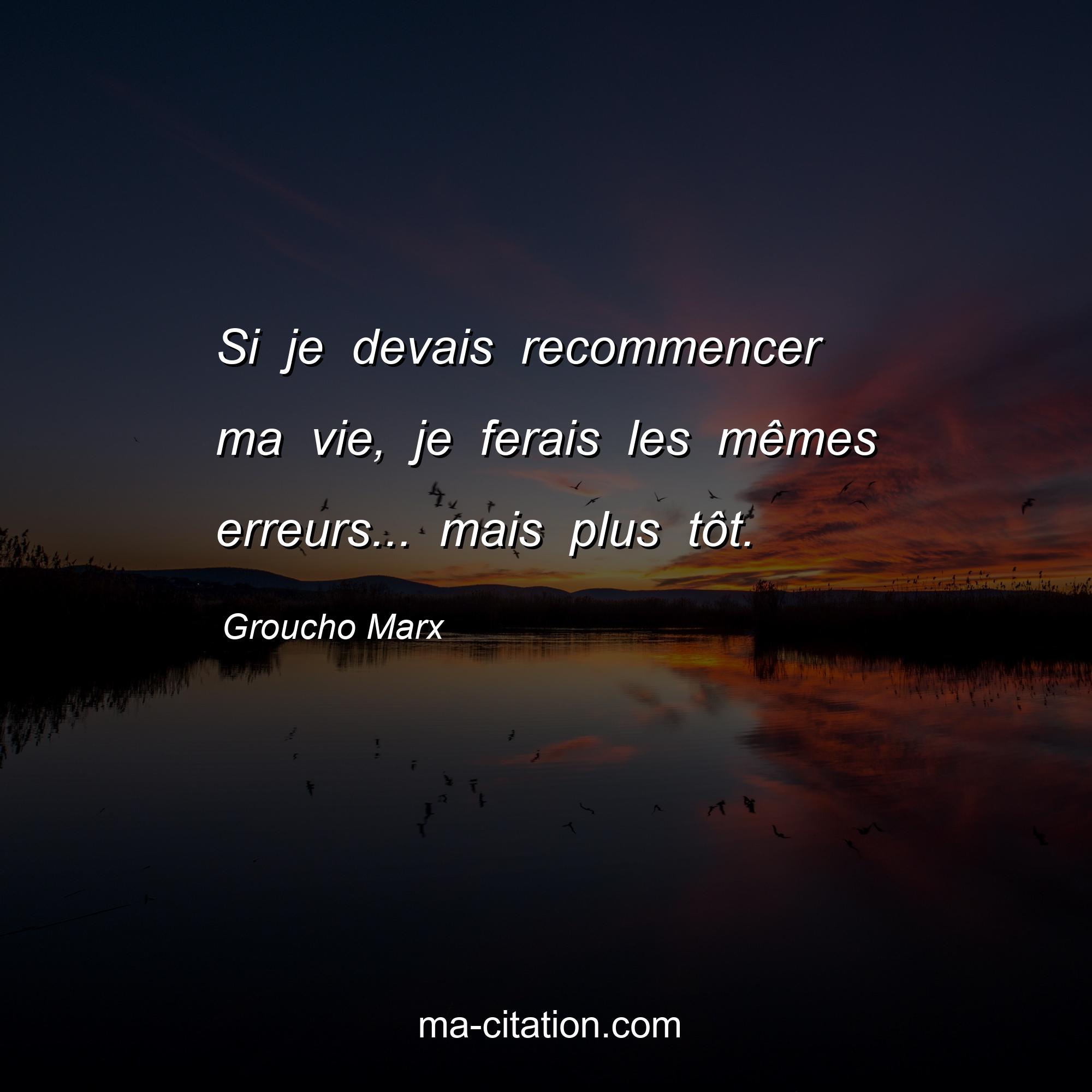 Citation sur la vie de Groucho Marx :Si je devais recommencer ma vie, je ferais les mêmes erreurs... mais plus tôt.
