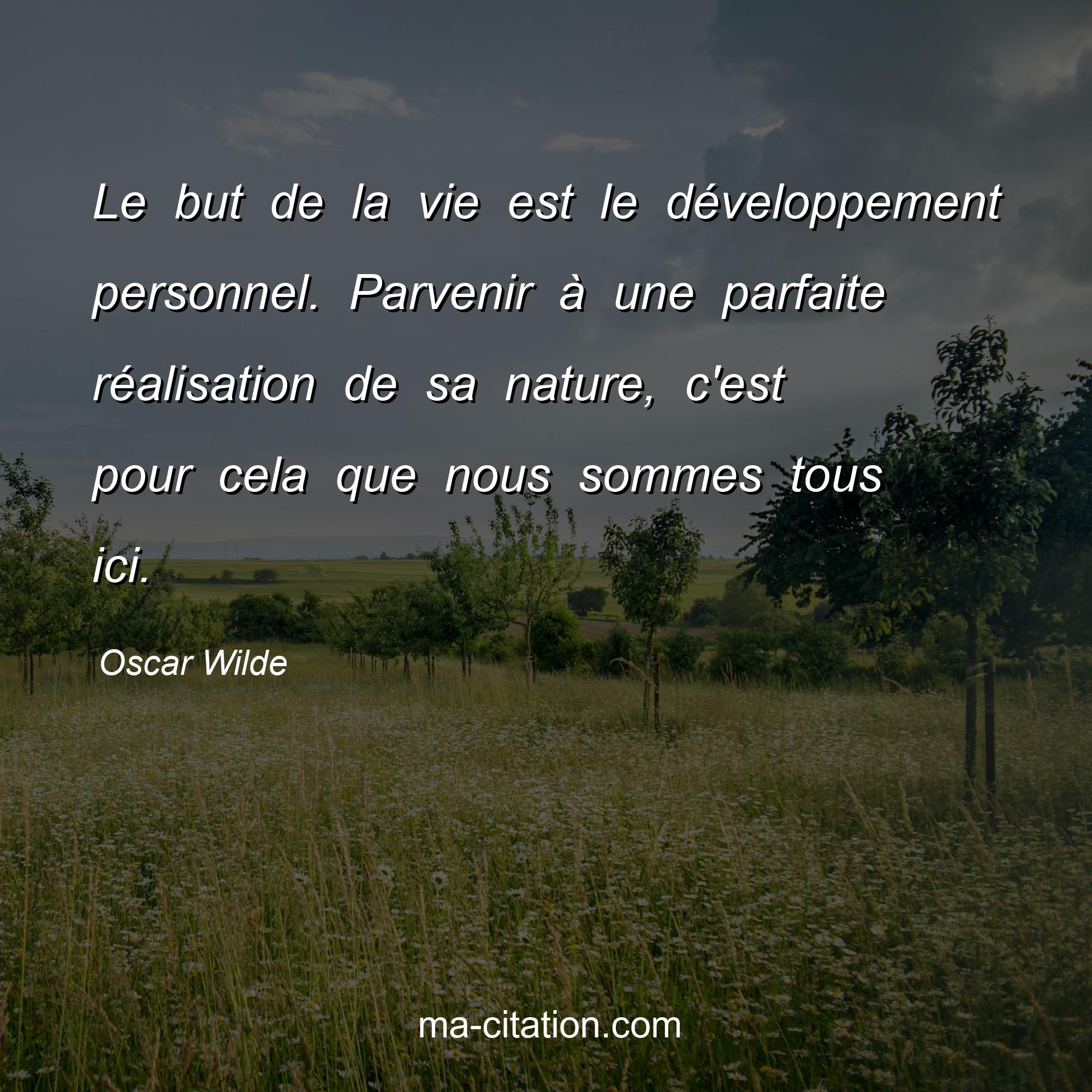 Citation sur la vie d'Oscar Wilde :Le but de la vie est le développement personnel. Parvenir à une parfaite réalisation de sa nature, c'est pour cela que nous sommes tous ici.
