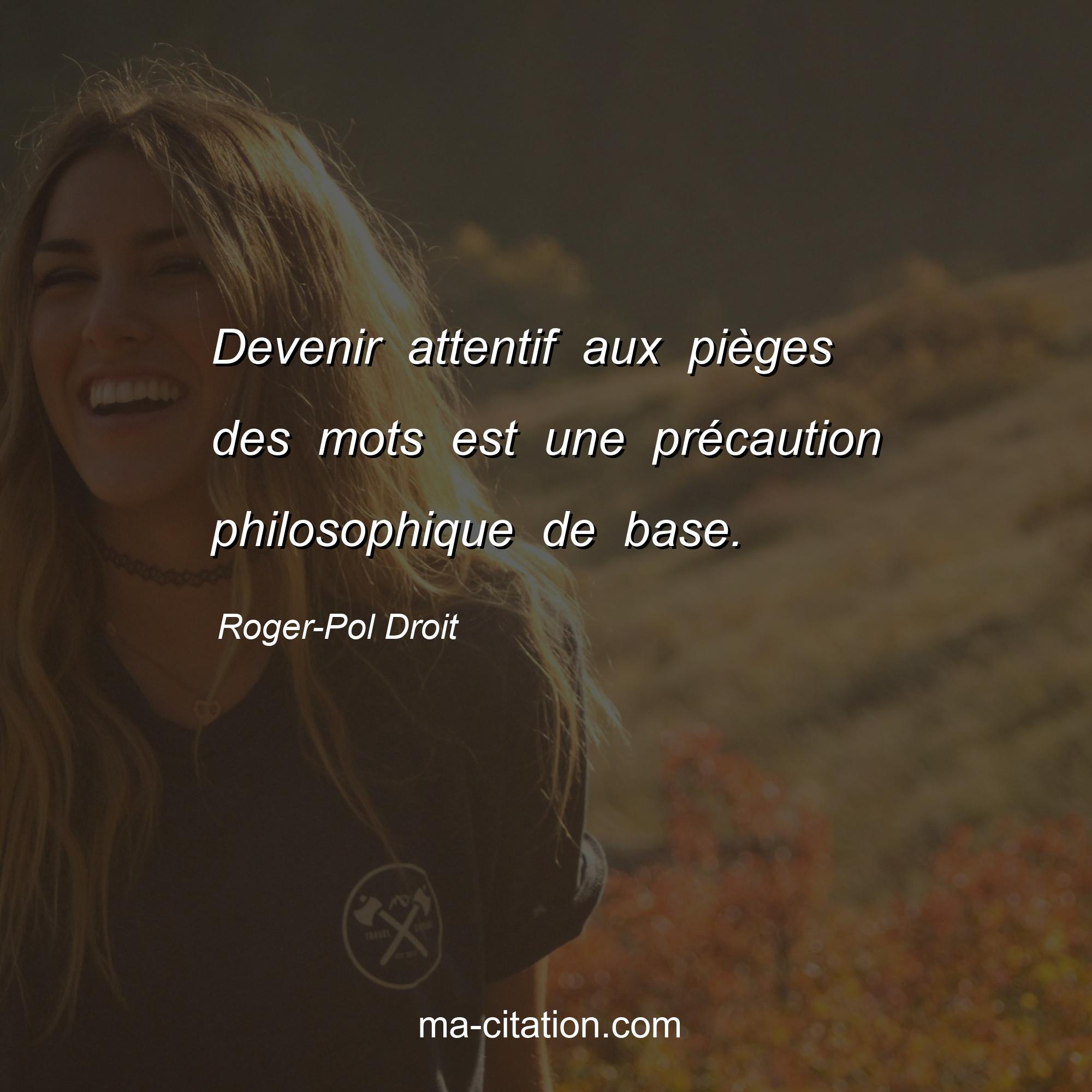 Citation sur la vie de Roger-Pol Droit :Devenir attentif aux pièges des mots est une précaution philosophique de base.