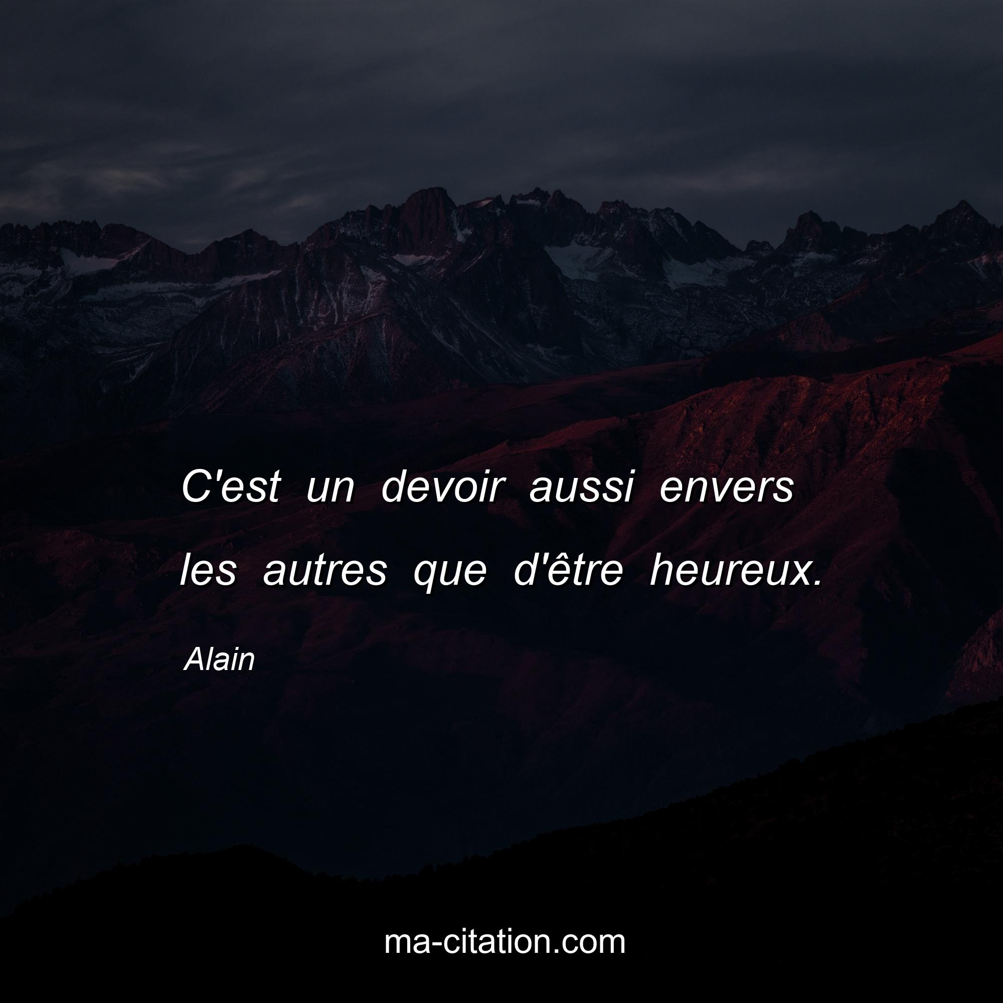 Citation sur la vie d'Alain :C'est un devoir aussi envers les autres que d'être heureux.