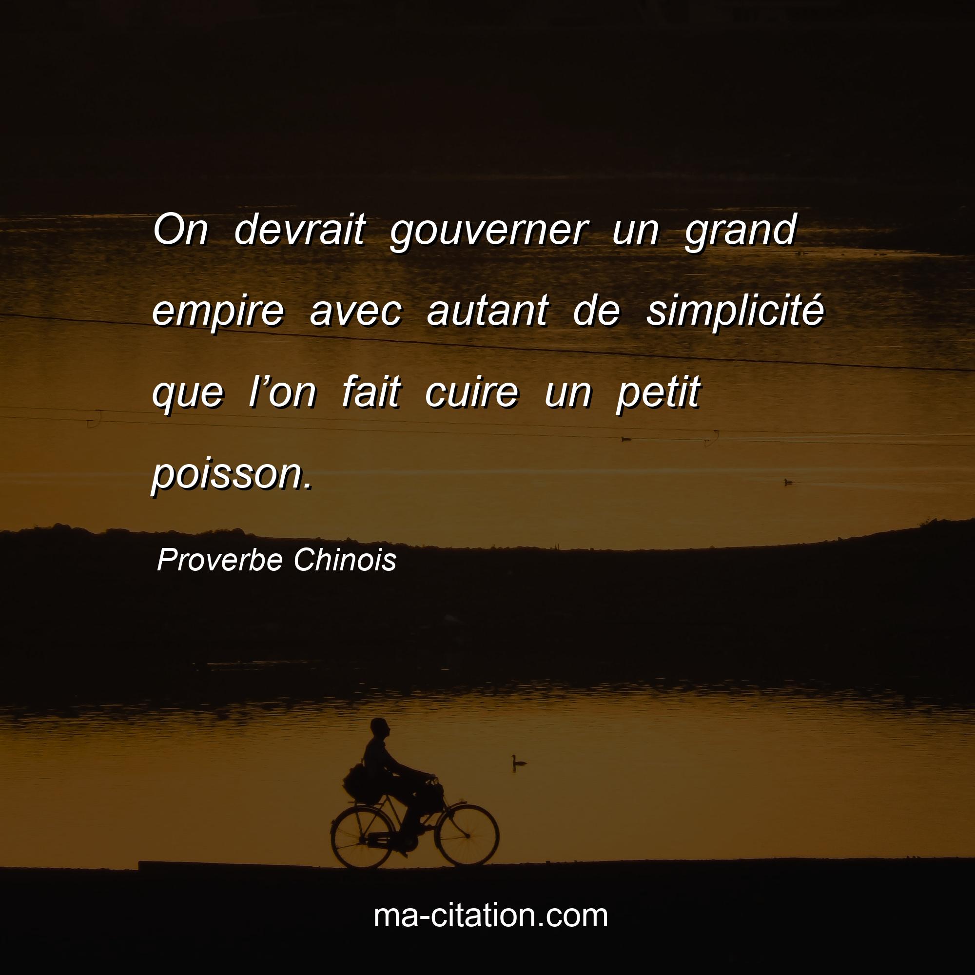 Proverbe Chinois sur la vie :On devrait gouverner un grand empire avec autant de simplicité que l’on fait cuire un petit poisson.