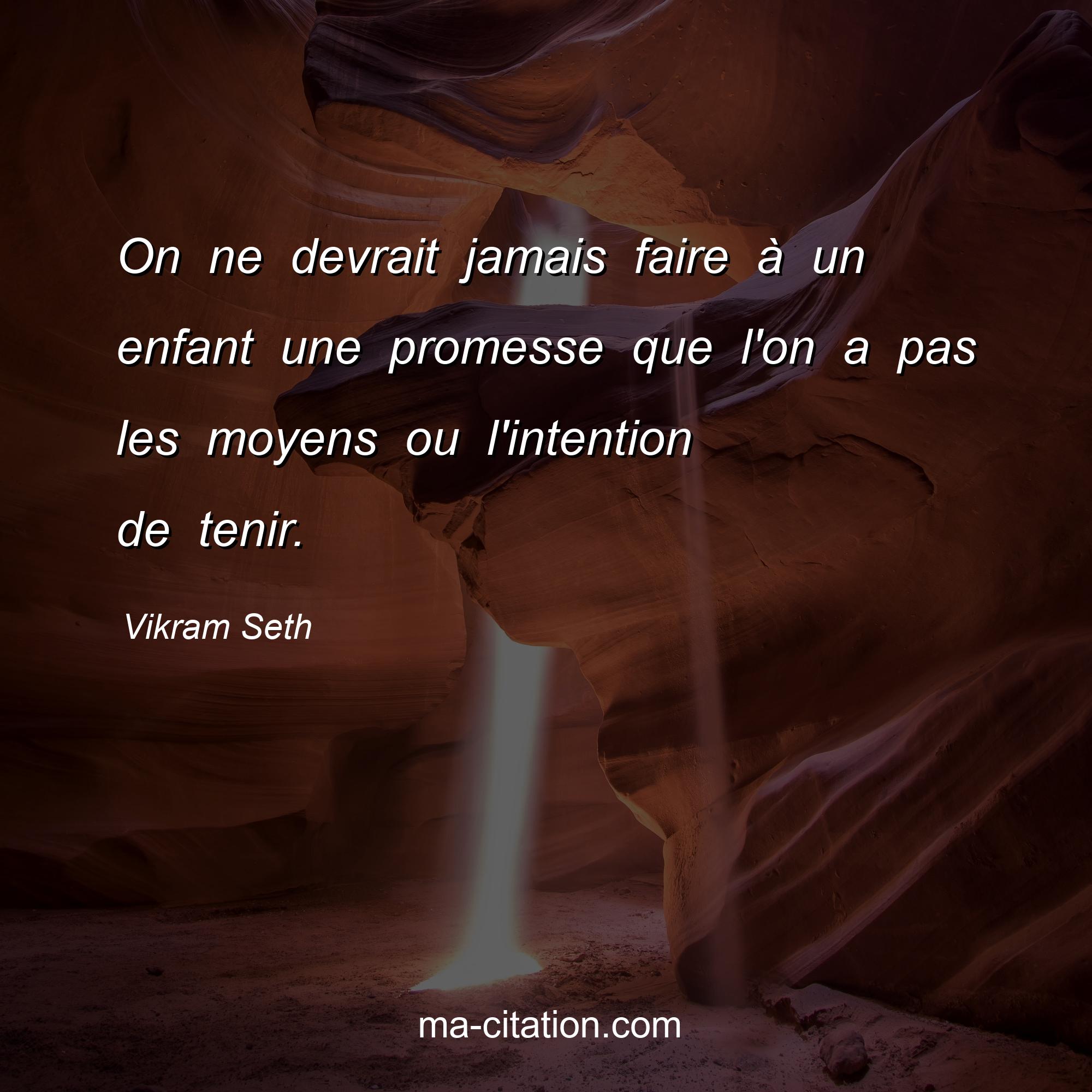 Citation sur la vie de Vikram Seth :On ne devrait jamais faire à un enfant une promesse que l'on a pas les moyens ou l'intention de tenir.