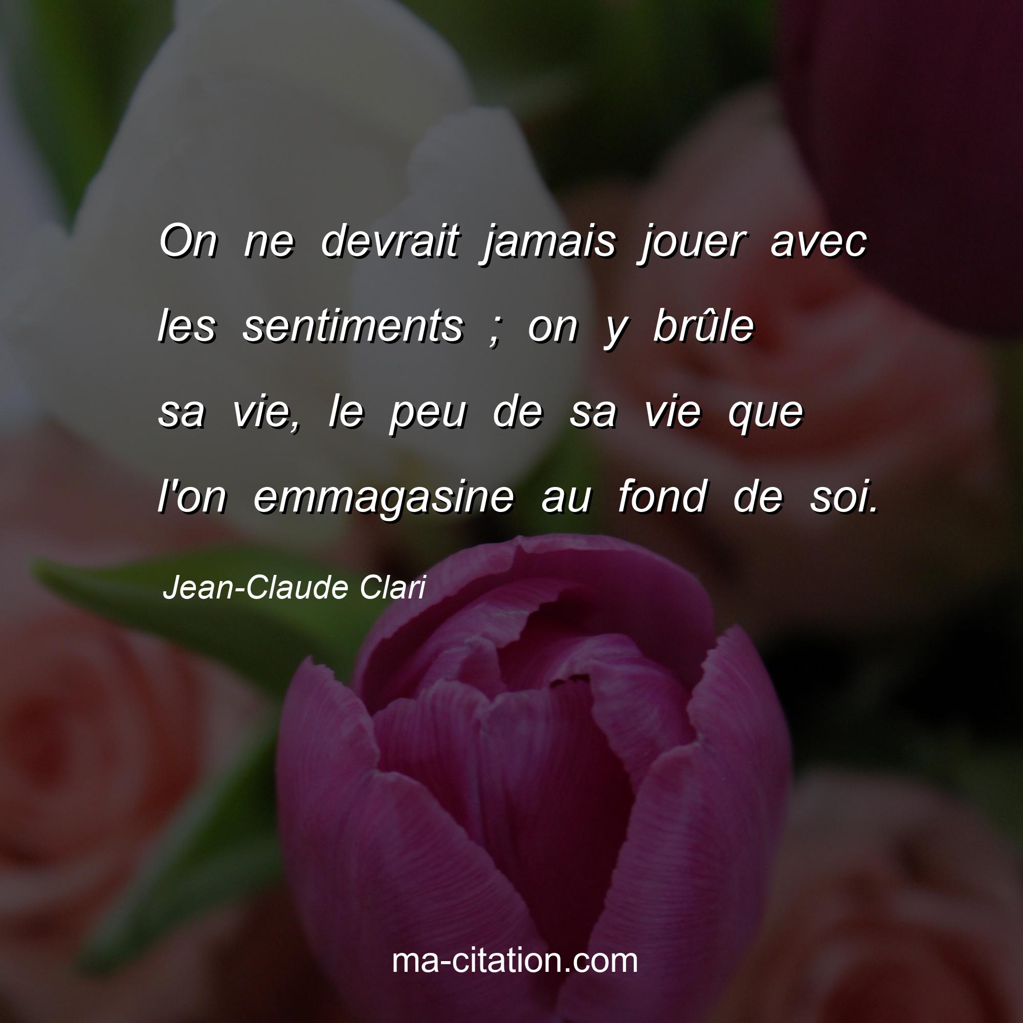 Jean-Claude Clari est l'auteur de la citation sur la vie "On ne devrait jamais jouer avec les sentiments ; on y brûle sa vie, le peu de sa vie que l'on emmagasine au fond de soi.".
