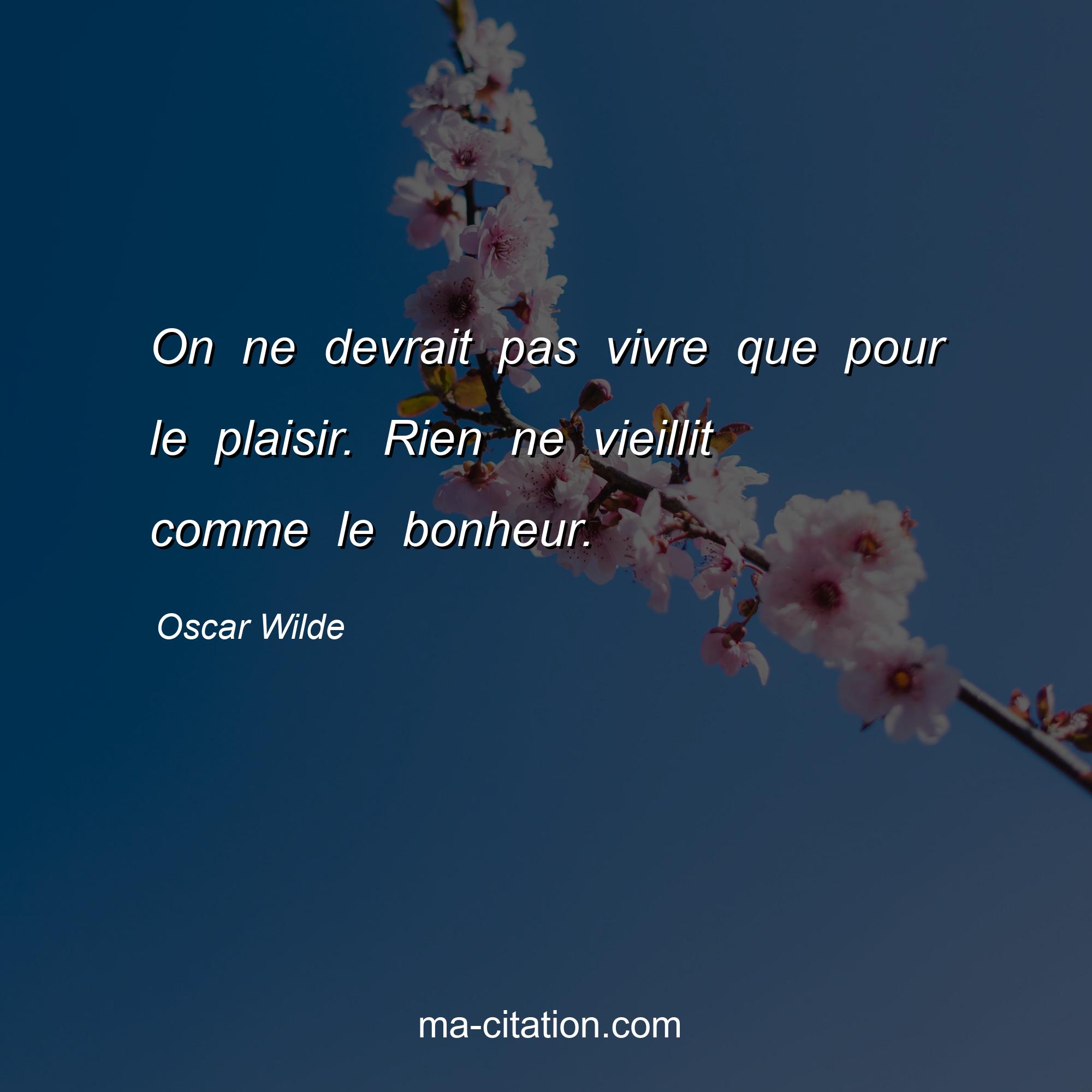 Citation sur la vie d'Oscar Wilde :On ne devrait pas vivre que pour le plaisir. Rien ne vieillit comme le bonheur.
