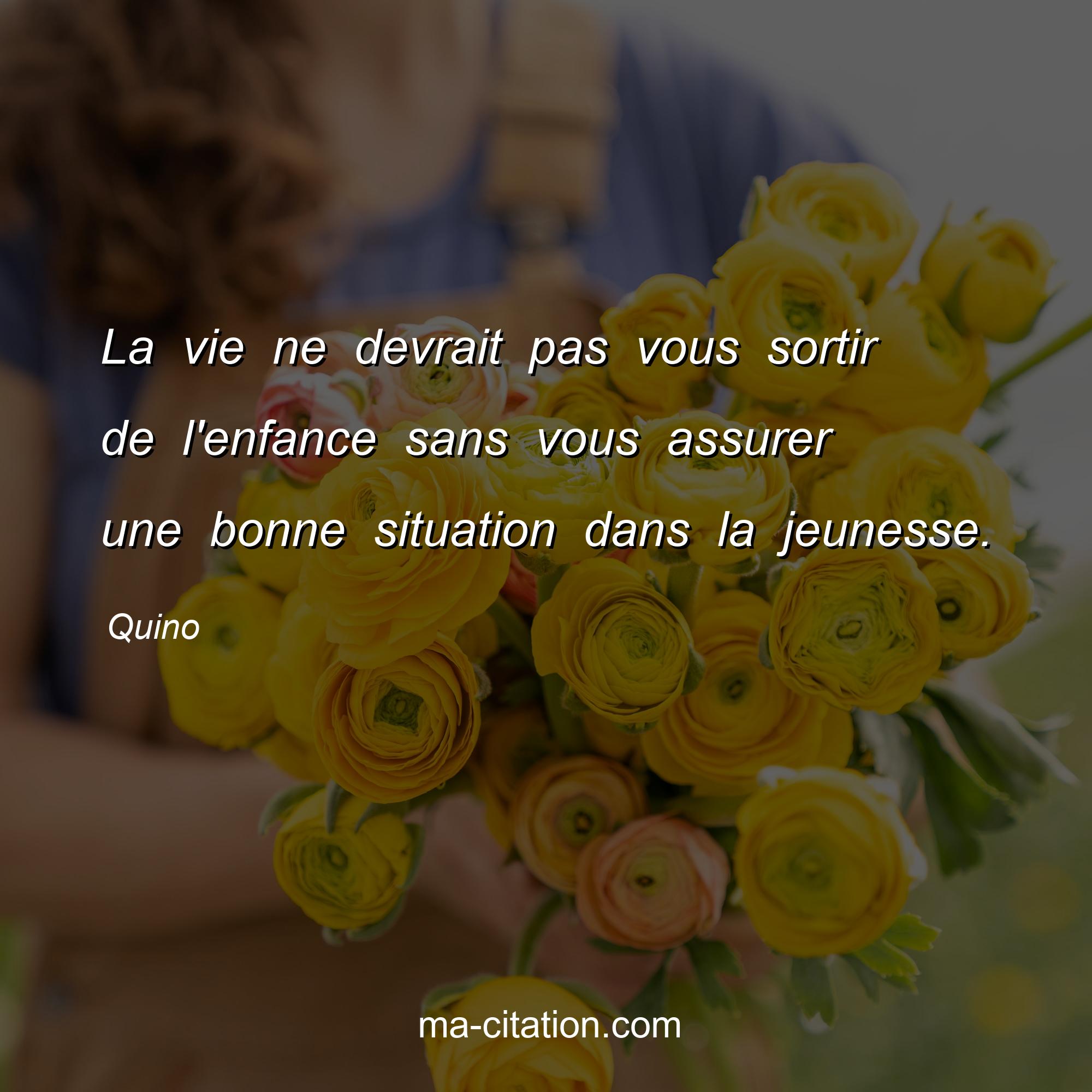 Citation sur la vie de Quino :La vie ne devrait pas vous sortir de l'enfance sans vous assurer une bonne situation dans la jeunesse.