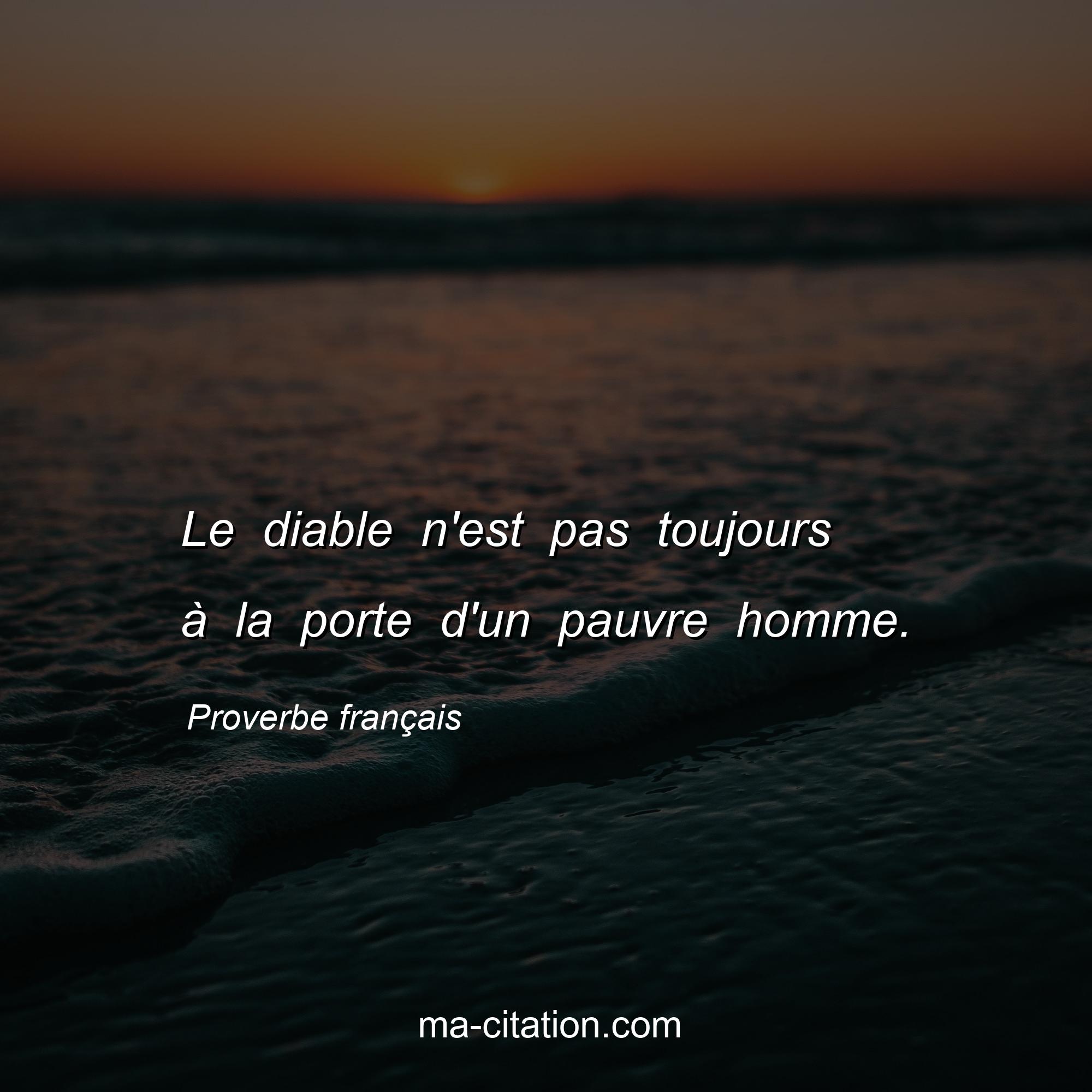 Proverbe français sur la vie :Le diable n'est pas toujours à la porte d'un pauvre homme.