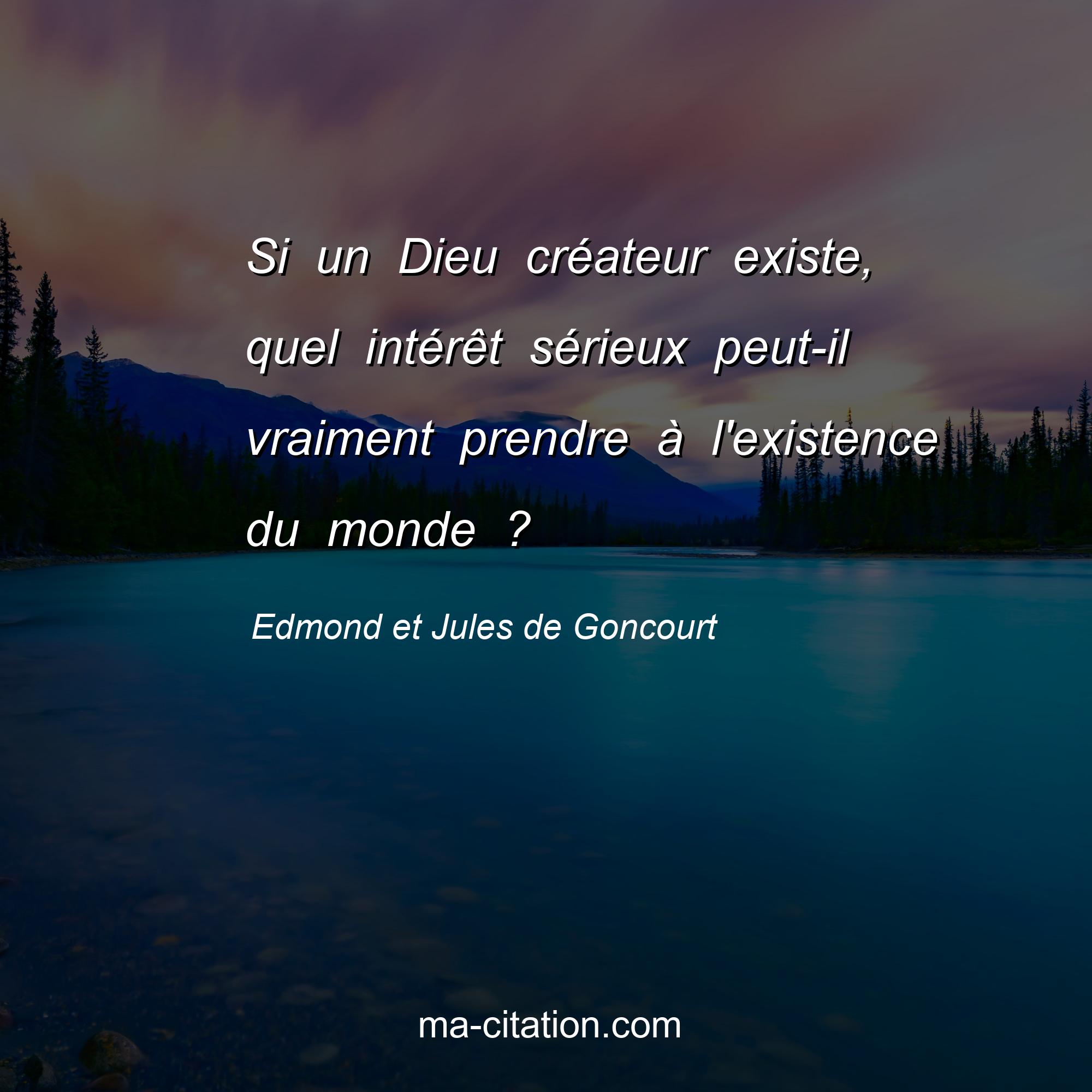 Citation sur la vie d'Edmond et Jules de Goncourt :Si un Dieu créateur existe, quel intérêt sérieux peut-il vraiment prendre à l'existence du monde ?
