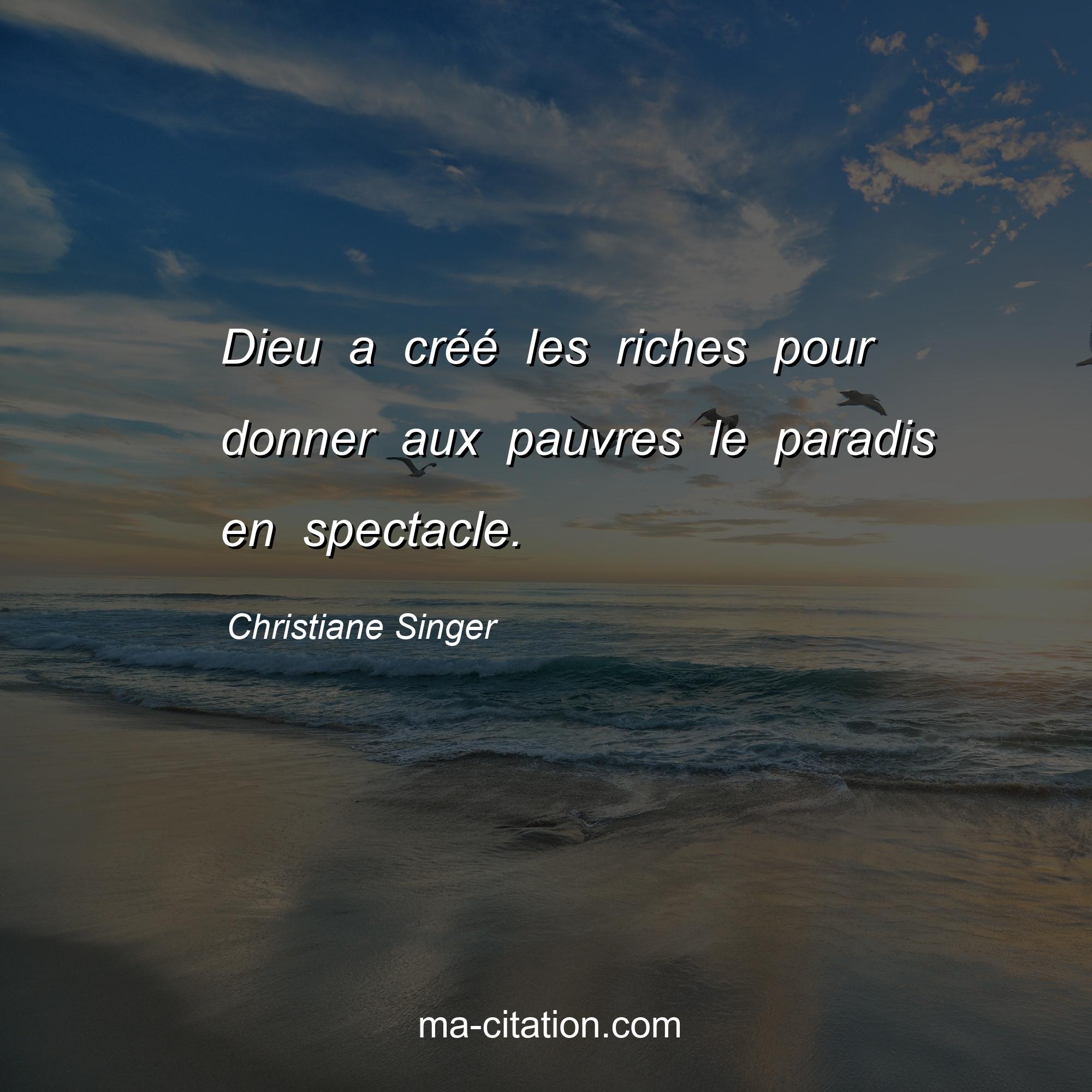 Citation sur la vie de Christiane Singer :Dieu a créé les riches pour donner aux pauvres le paradis en spectacle.
