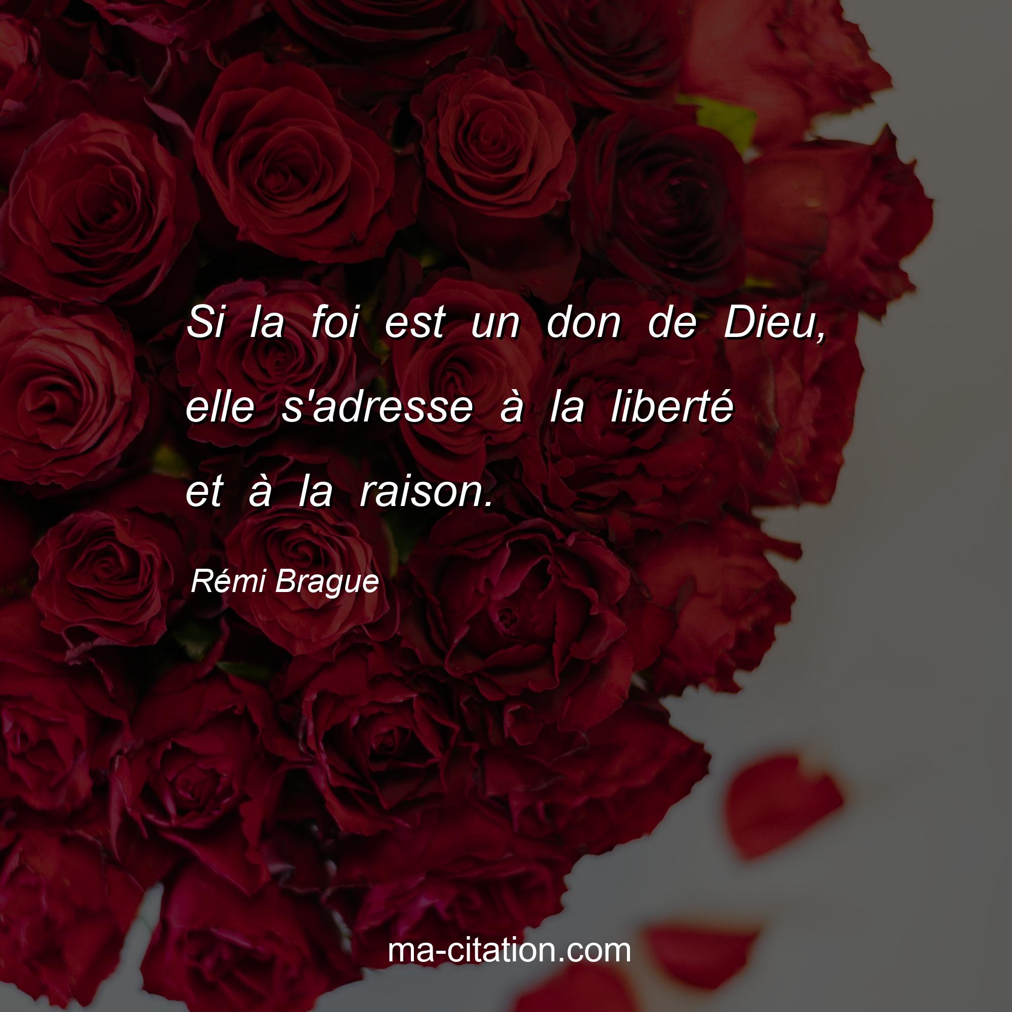 Citation sur la vie de Rémi Brague :Si la foi est un don de Dieu, elle s'adresse à la liberté et à la raison.