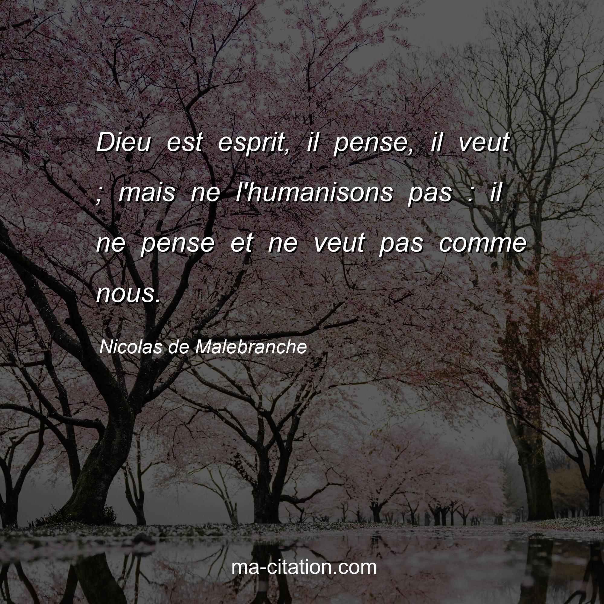 Citation sur la vie de Nicolas de Malebranche :Dieu est esprit, il pense, il veut ; mais ne l'humanisons pas : il ne pense et ne veut pas comme nous.