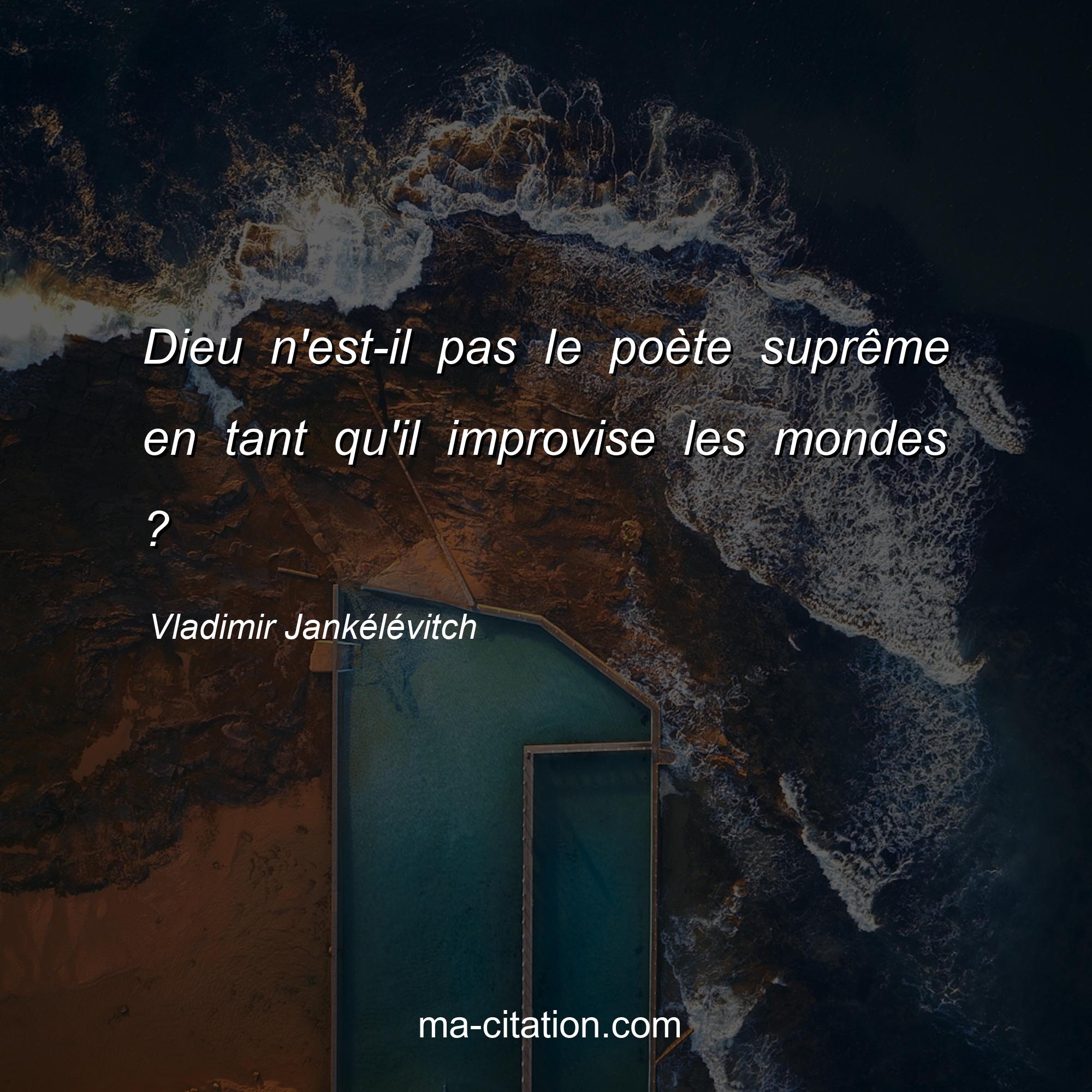 Citation sur la vie de Vladimir Jankélévitch :Dieu n'est-il pas le poète suprême en tant qu'il improvise les mondes ?