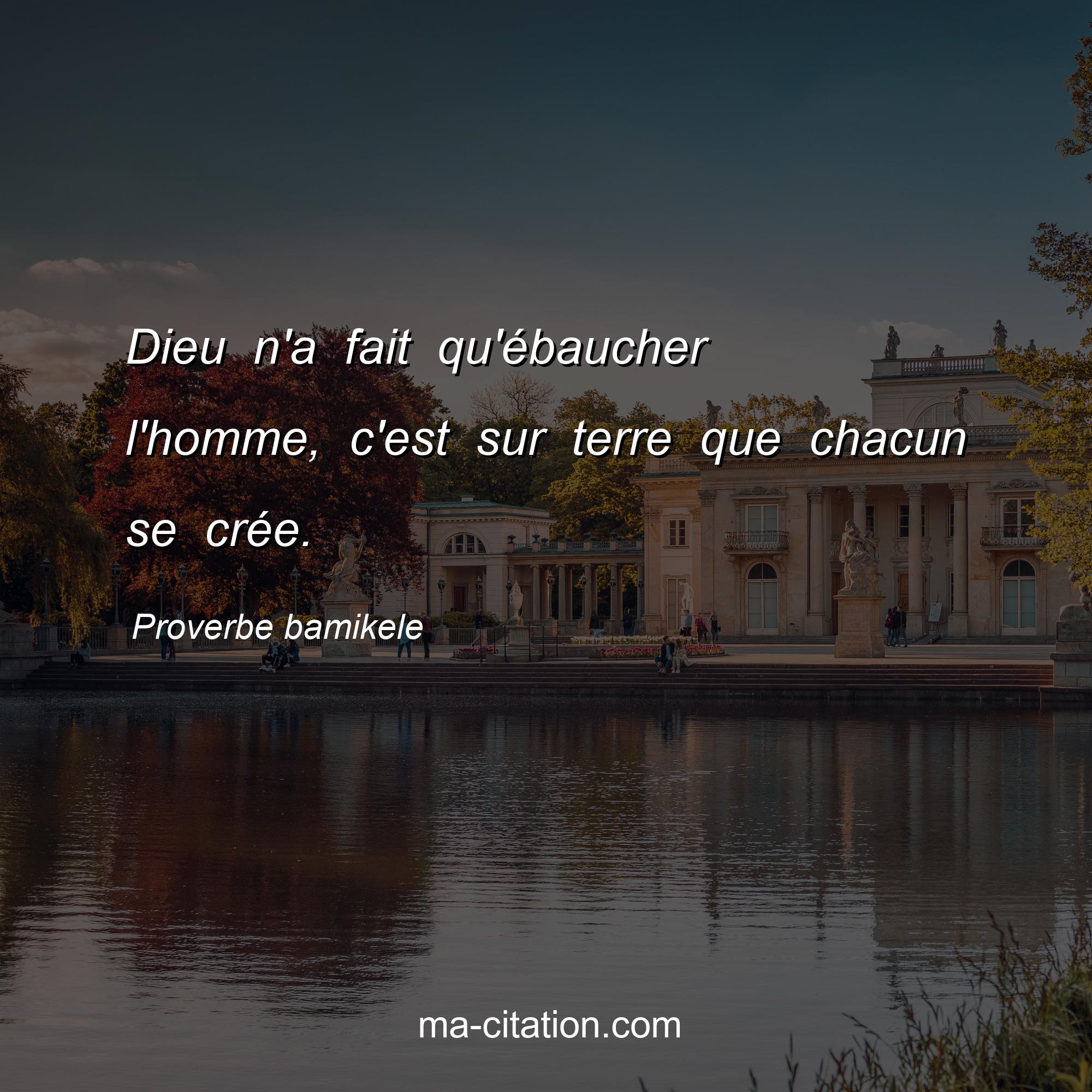 Proverbe bamikele sur la vie :Dieu n'a fait qu'ébaucher l'homme, c'est sur terre que chacun se crée.