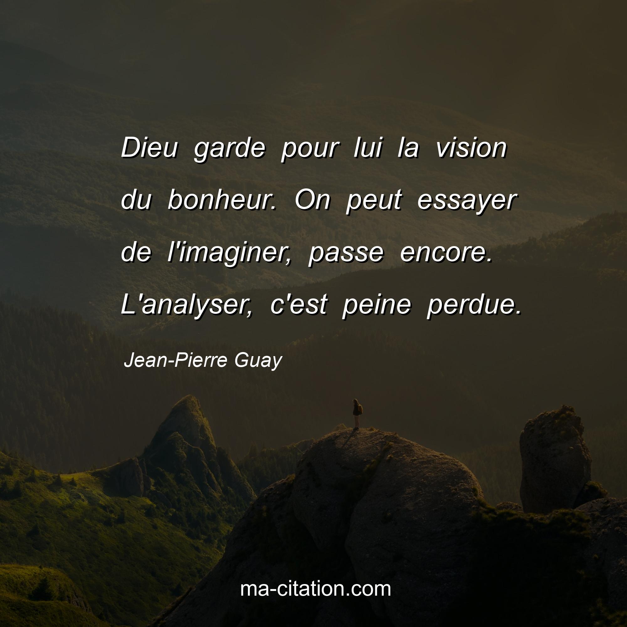 Citation sur la vie de Jean-Pierre Guay :Dieu garde pour lui la vision du bonheur. On peut essayer de l'imaginer, passe encore. L'analyser, c'est peine perdue.
