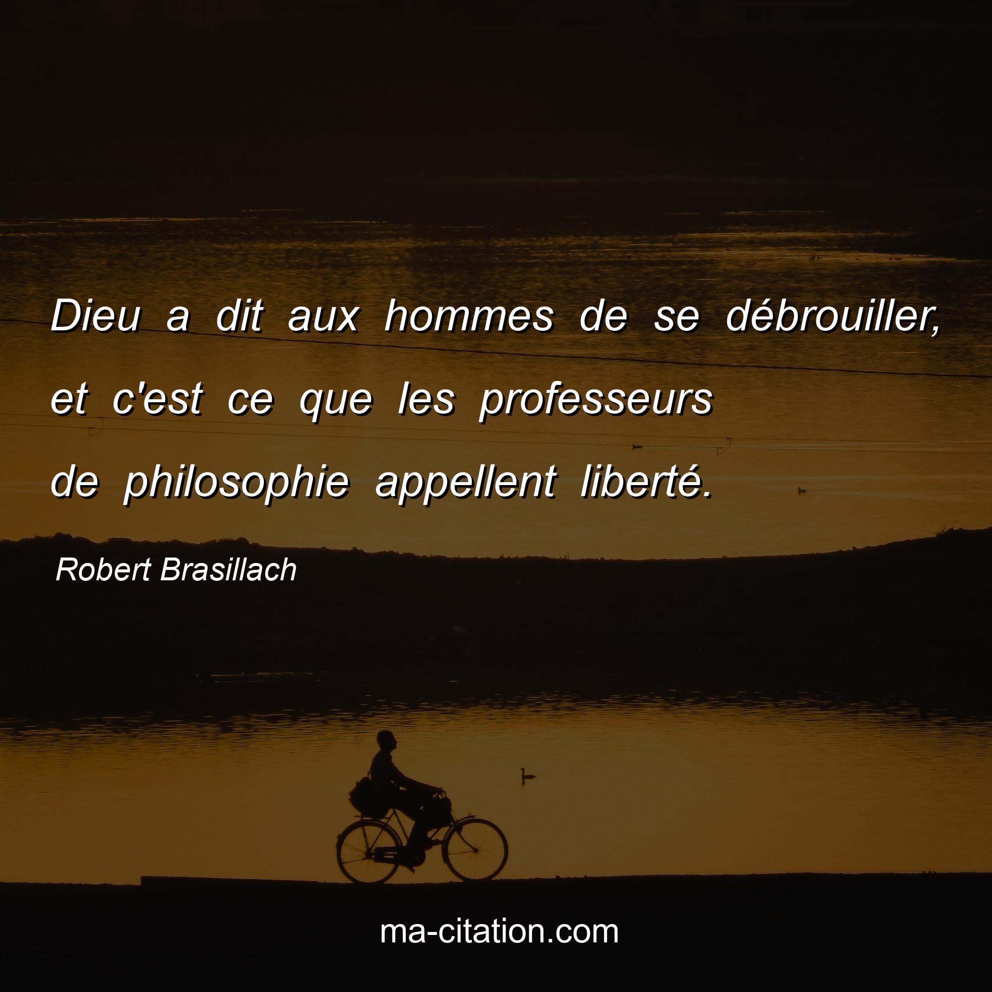 Citation sur la vie de Robert Brasillach :Dieu a dit aux hommes de se débrouiller, et c'est ce que les professeurs de philosophie appellent liberté.