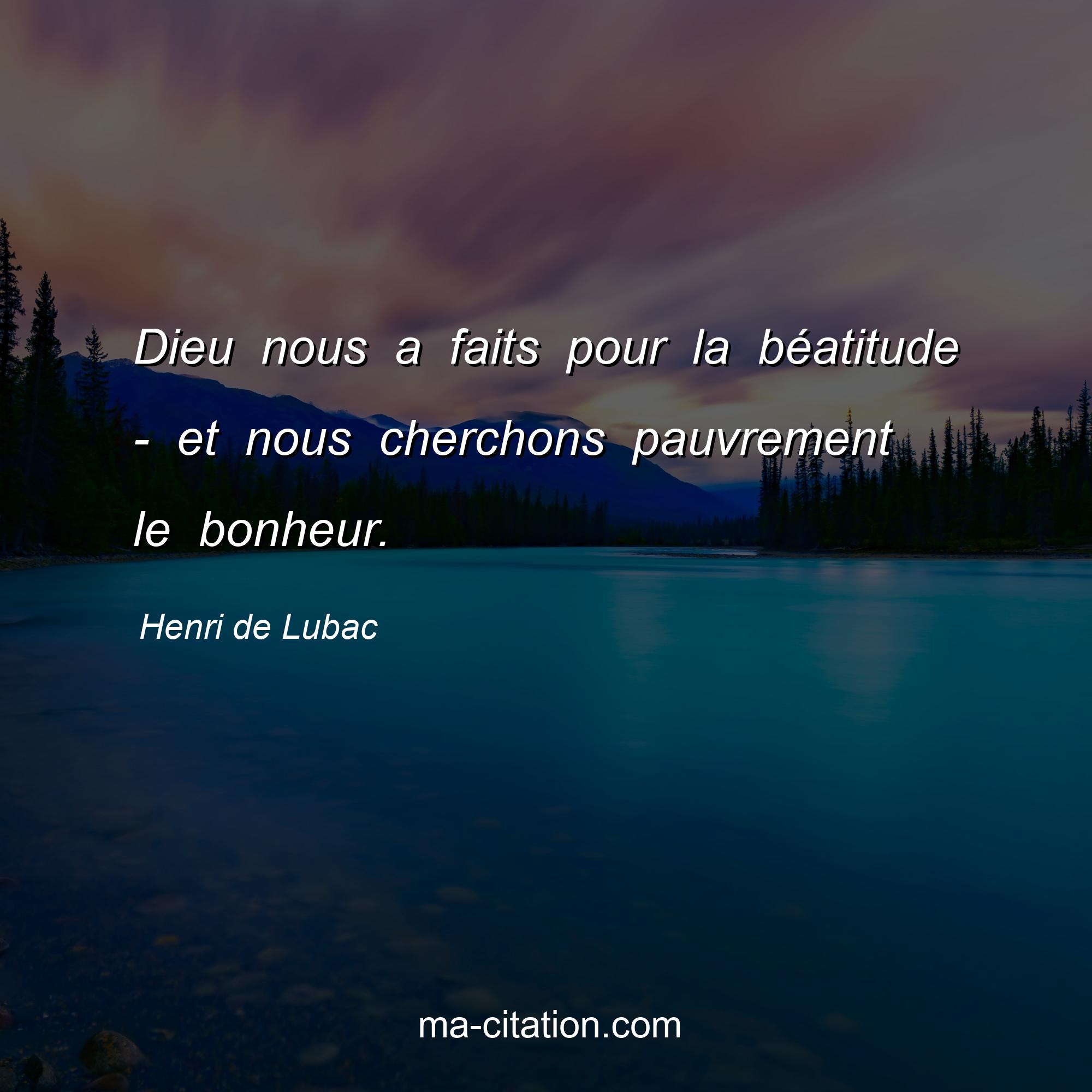 Citation sur la vie de Henri de Lubac :Dieu nous a faits pour la béatitude - et nous cherchons pauvrement le bonheur.